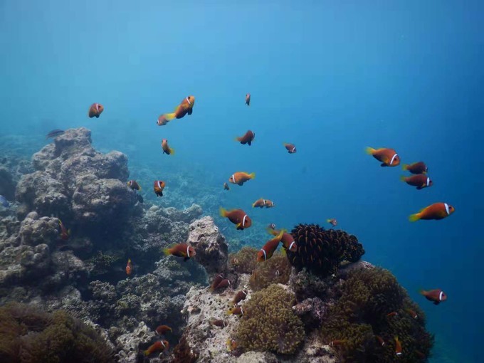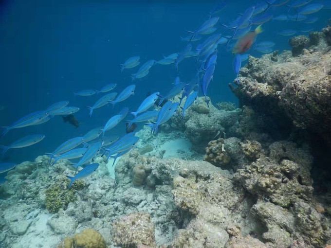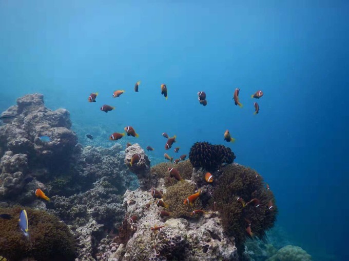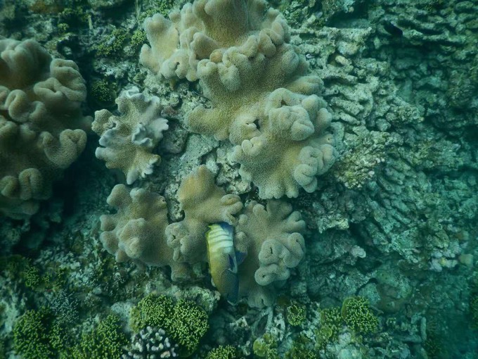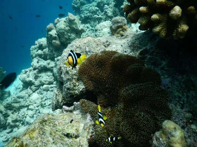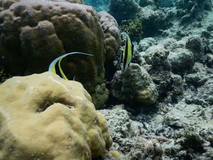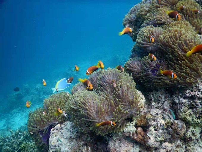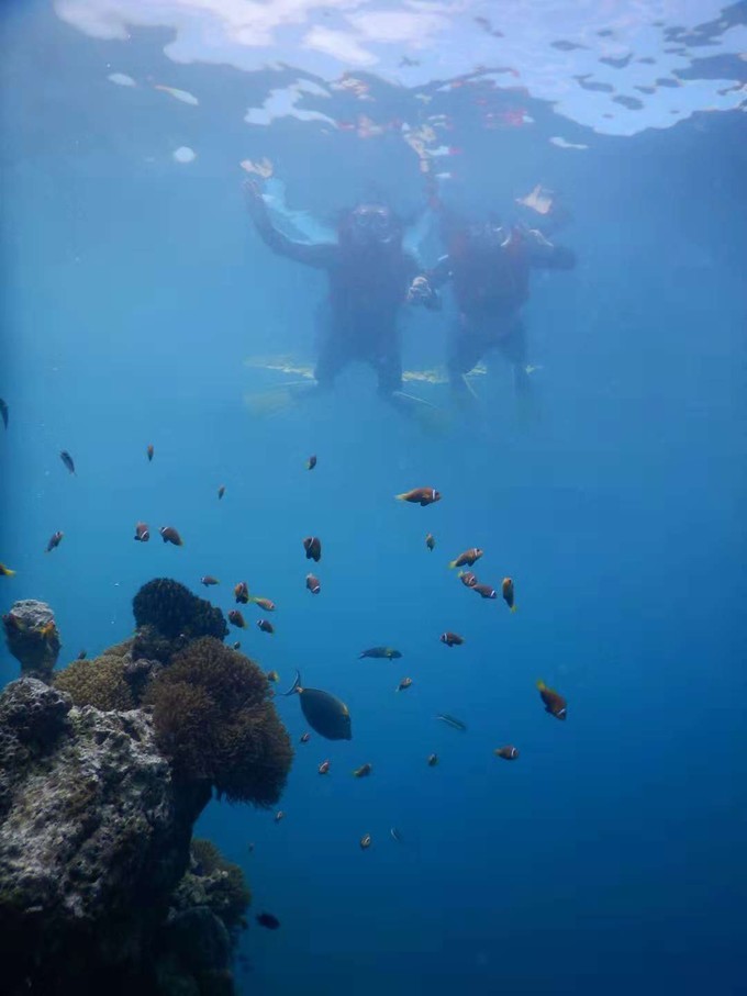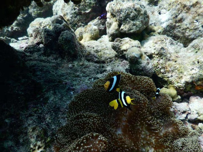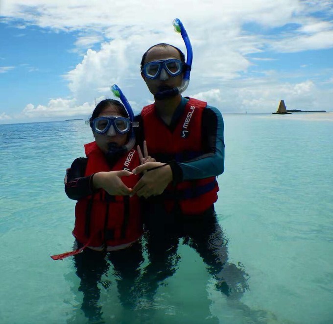 第二天早上吃过早餐以后我们就来到水上中心参加浮潜课程,有一个专门的教练指导我们俩去浮潜,中间还为我们拍了很多照片,不得不承认,伊瑚鲁不愧是 马尔代夫 数一数二的浮潜岛,水下的生态环境太棒了!
