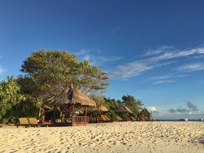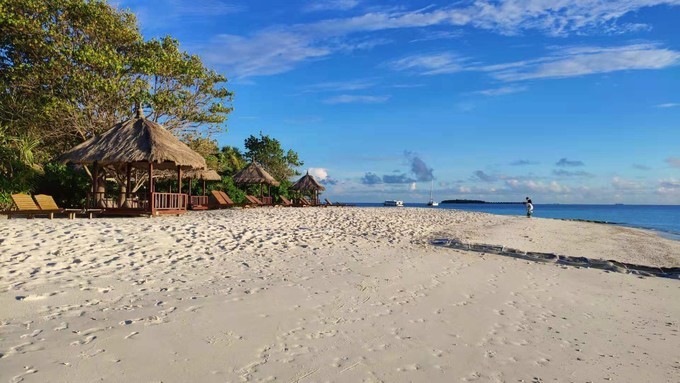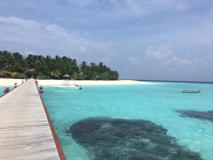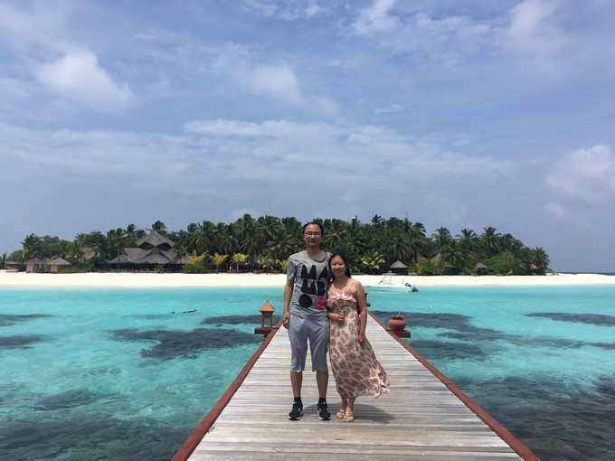 3、岛上酒店:我们是找的海岸线假期,联系方式是13428937321(如果有需要可以联系他们,帮我们预定的时候也很热情哦)我们选的是ihuru,这个岛是悦榕庄旗下的岛屿,跟对面的瓦宾 法鲁 是姐妹岛,可以同时玩两个岛,每天有很多班次的往返快船5、6分钟就能到。ihuru只有沙屋哦,总共只有45间,因为保护措施做得好,那里的海水和沙滩更加优质,浮潜非常棒。