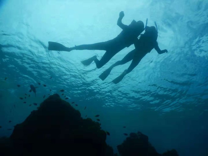 1、浮潜:带度数的防雾浮潜面镜和加长版全干式呼吸管,防晒水母服,潜水鞋和潜水手套