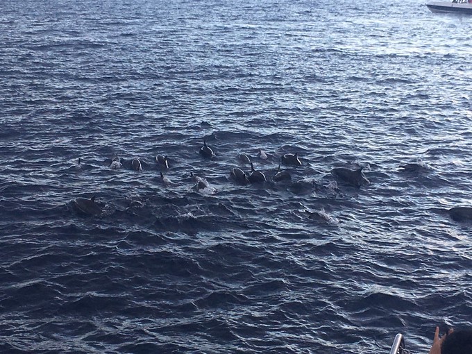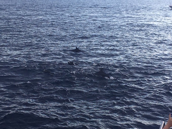 下午我们去参加观看海豚的活动,一艘船上一共不超过15个人,从伊瑚鲁到出没海豚的领域大概行驶了45分钟,中间还稀稀拉拉的下着小雨,当时我们等了好久以为下着雨不会看到海豚了,可是一群海豚翻滚的时候所有人都发出来尖叫!!!真是太令我们激动了,小时候去海洋馆最喜欢看海豚表演,这次居然能看到野生海豚