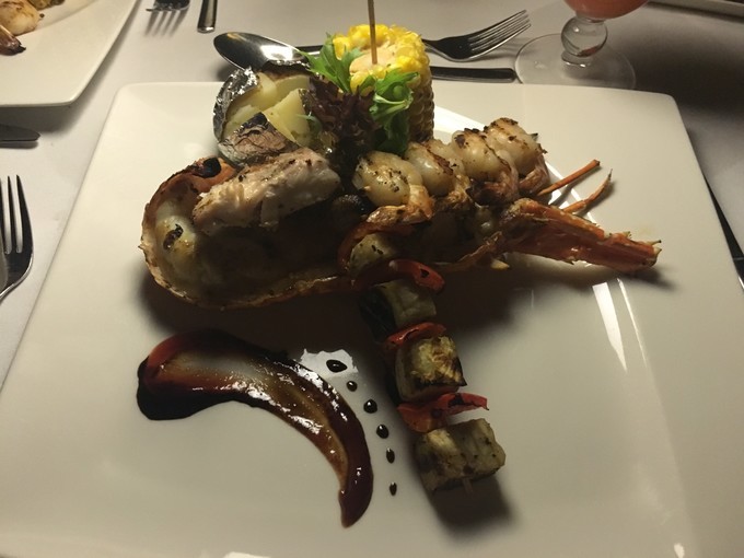 蜜月餐是让我们在酒店门前吃的,我们加了60美金升级了龙虾套餐,请的是 印度 的主厨为我们做的海鲜BBQ。