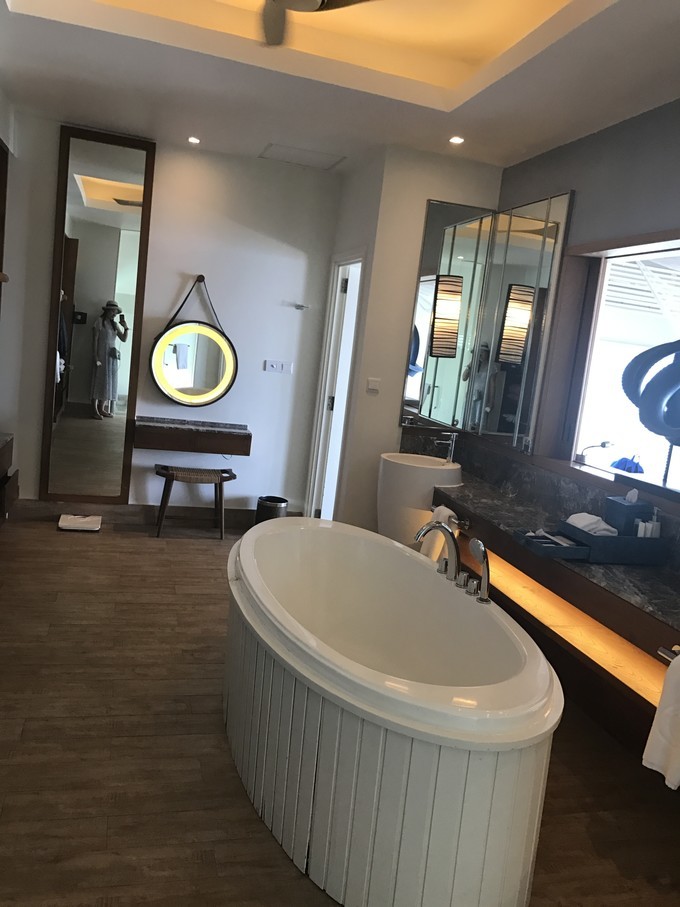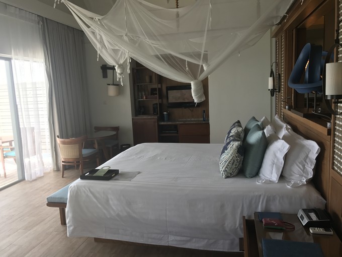 入住的时候有VISA卡的,酒店会留个卡号,没有会留200美金算是押金请提前准好。酒店会自己安排沙屋和水屋的顺序如有需要可以沟通调换顺序但是能不能 成功 就不知道了哈😄。下午三点多正式入住我们的泳池水屋。哈哈,第一次住这么豪华的房间心里这个激动呀,拿出手机到处拍照,泳池连接着大海,不