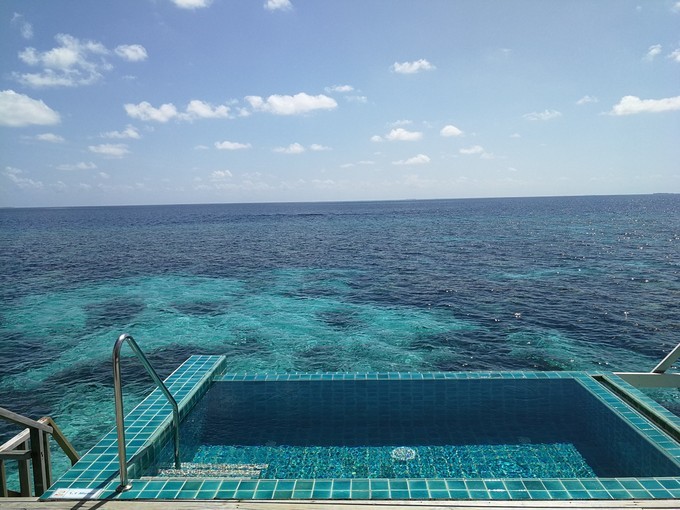 用担心泳池的水的问题,每天工作人员都会重新更换的,我们不会游泳,只能先在泳池里扑腾,虽然泳池的面积不太大,但也还好,唯一的遗憾就是没有在去旅行之前先学会游泳,在出行之前脑中各种想象水屋的样子,但是没想到会如此之美,住着也很舒适,闲暇时间我