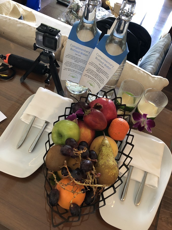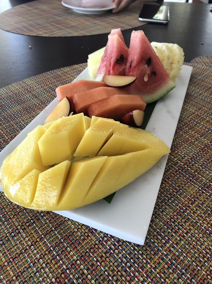 Day5 离别日,坎岛依然安排得非常非常周到。我们被安排下午四点离岛,早餐和午餐都是包含的,吃完早餐后去做了个spa,午餐最后点的水果没有来得及上,还给我们切好了打包成一小份一小份的,细节做的很好。最后中文GO蔡蔡把我们送上了水飞才回去。
