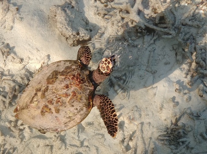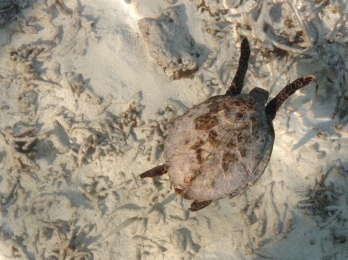 教练带过一次,就是自己去了,为保险起见还是去的教练带的路程,即从码头下水游到餐厅附近。餐厅附近长期有大海龟觅食呢。