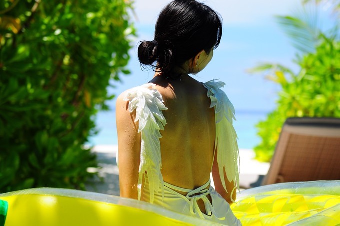 三套服装完毕,老公这枚道具结束了他的使命。为了充分体现为老婆拍照的老公才是好老公,我给自己加了两套戏------准备了一套泳衣配菠萝🍍浮排,一套晨袍配星光串灯,hiahiahiahia~