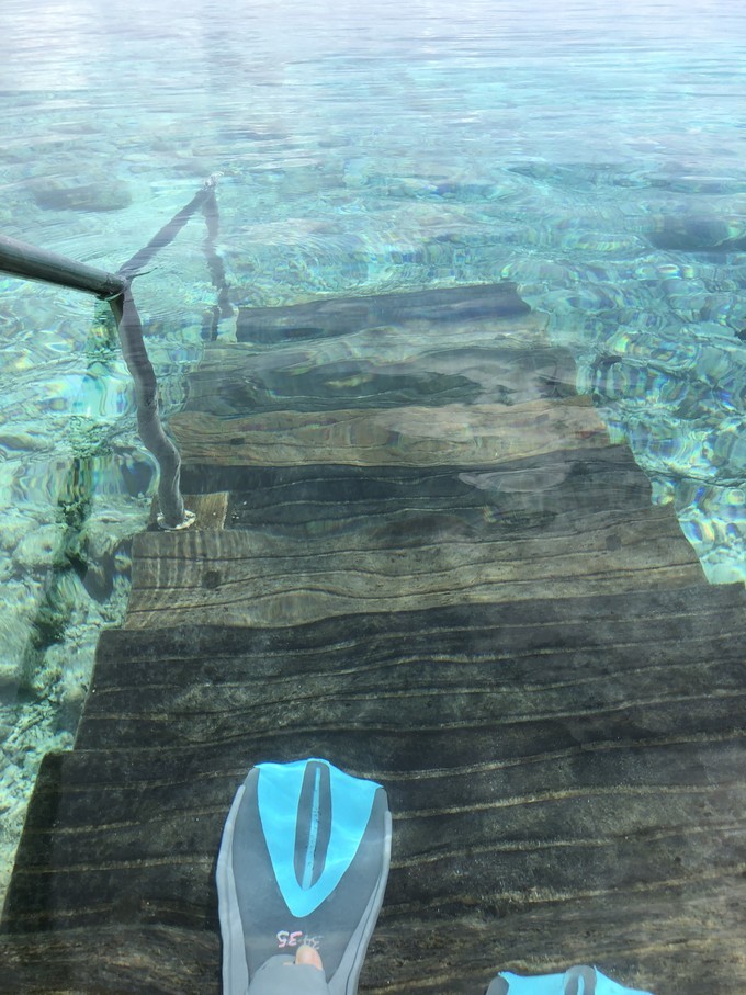 我们是赠送了一次有向导的浮潜,所以第一次就由教练带着浮潜。说到这里就有个很遗憾的事情,房间的配的gopro建议一定提前检查好并充好电,我们就是拿下水了才发现原来没电了,都没有拍到四五只魔鬼鱼一起玩的大片!
