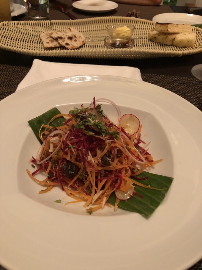 事实证明我们选择的基础一价全含是足够的(坎岛叫a la carte,其实就是FB,三餐加三餐饮料,每餐可选三道菜,房间咖啡茶矿泉水免费,minibar不免费)我和我老公都不是很能吃... 再加上我们的两个妈妈也不是很能吃,每次吃饭我们相当于可以选12道菜,从未选完过