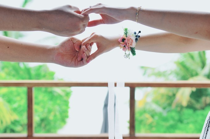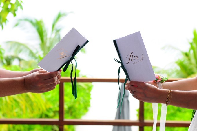 第一套:正式的婚纱西装。本Biu还是态度很严谨的租了一件的婚纱,再给老公定制了衬衣西装全套,围绕本套服装,准备了一个珍珠头纱、一枚头饰、一束手捧花、一个手腕花,一枚红色领结,一对誓言本。后来给婚纱加了顶帽子和蕾丝颈链,感觉又换了套look