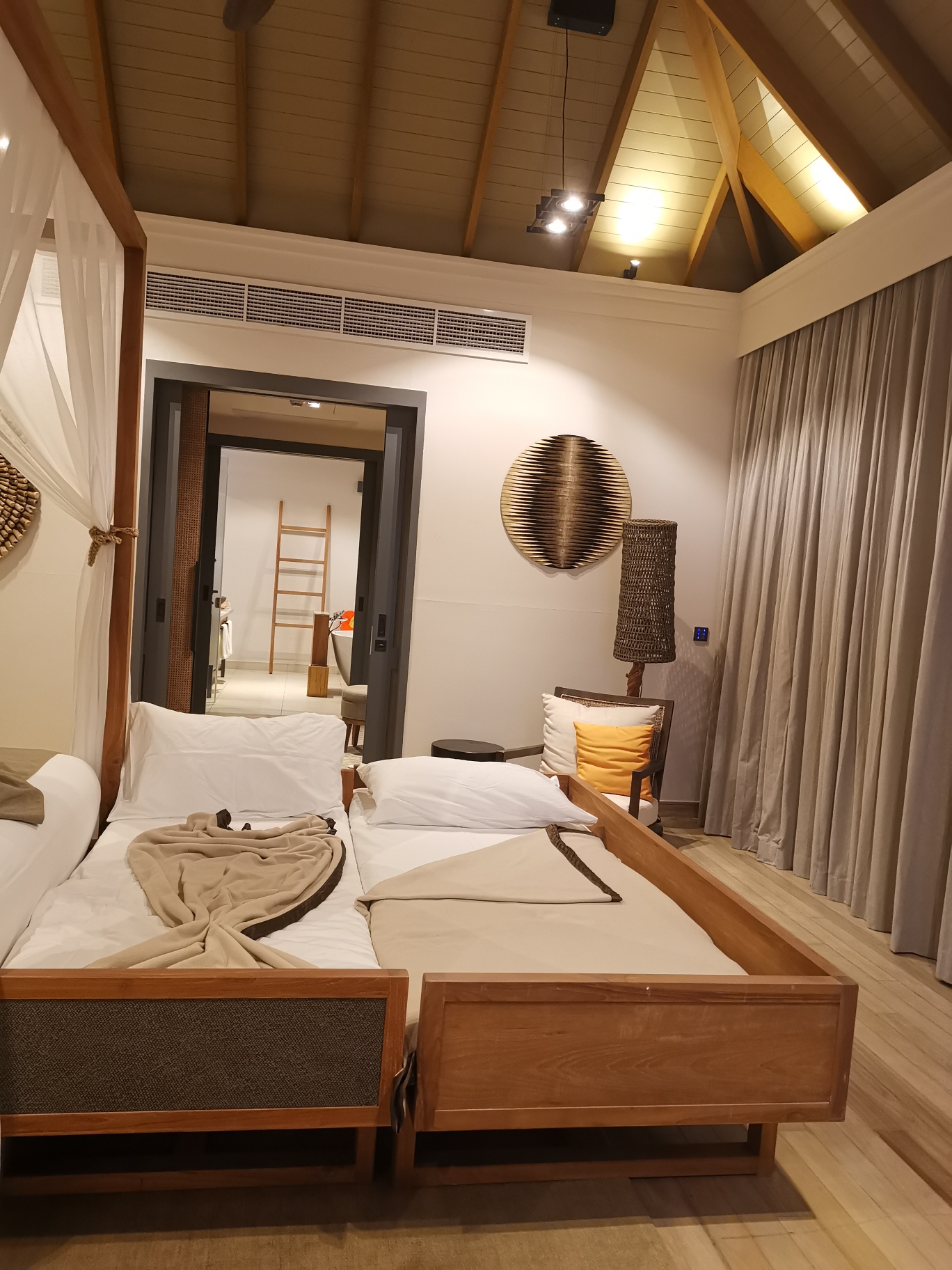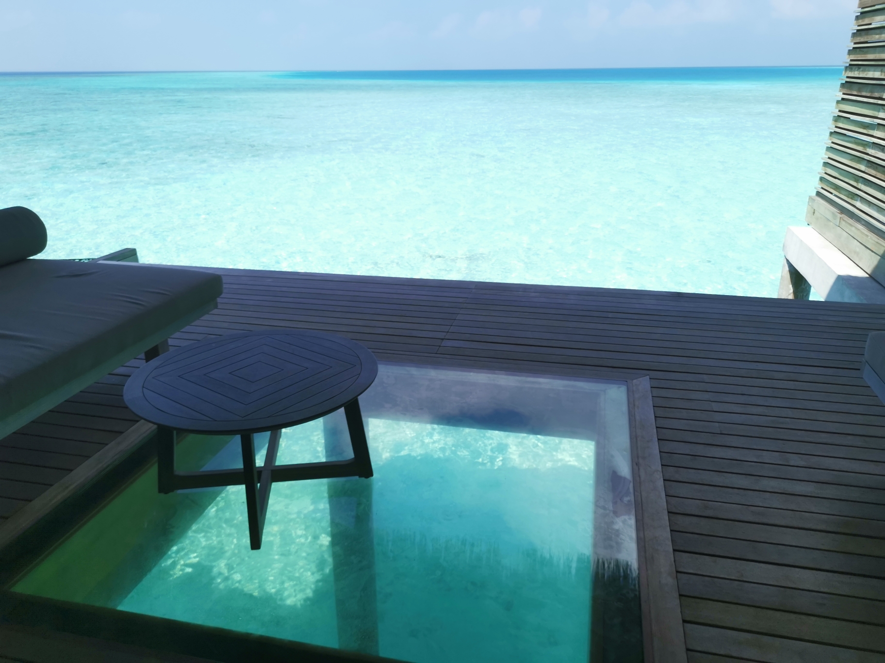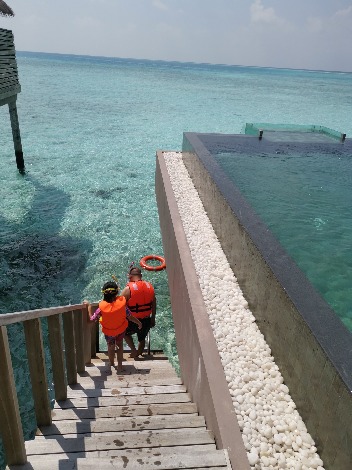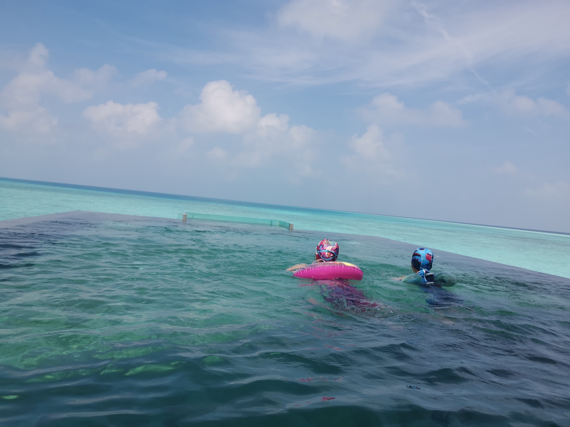 三晚沙屋后,管家通知我们早上10点就可以换到水屋的房间,又是满满的期待啊,走进水屋的区域就更有马代的感觉了,水屋房间也是极好的,房间很大,有一个非常大的无边泳池,网床,玻璃地板,据说VAKKARU水上泳池套房只有5间,如果是带小朋友的我还是非常推荐要选这个房型,毕竟小朋友还是不方便直接下海浮潜,那就继续在大泳池里嗨皮吧!