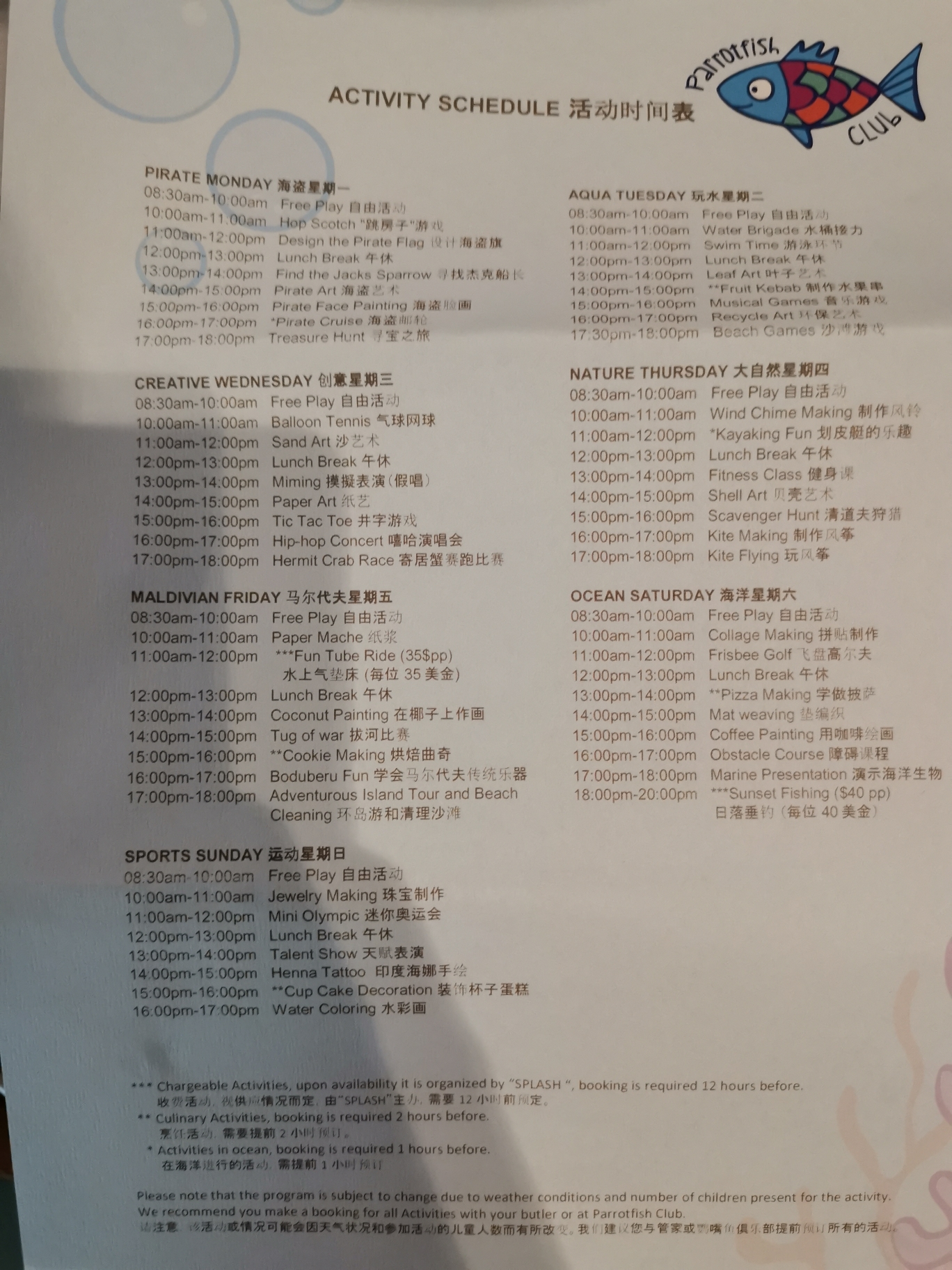 vakkaru的服务不错,每个人都很热情,管家给我们的各种安排也都很好,包括最后一天,帮我们延时到了5点退房,还给了一间沙滩泳池套房让我们休息!岛上的服务员小黑们也是超级热情,水屋套房只有一张床,但是他们瞬间就把几个沙发抬起来拼成一张床給小孩们睡,平日也是来泳池各种清扫和检查!弟弟出门没穿鞋,大热天的地板很烫没法走,碰到了一个显黑直接全程抱着他去餐厅,满满的都是小感动