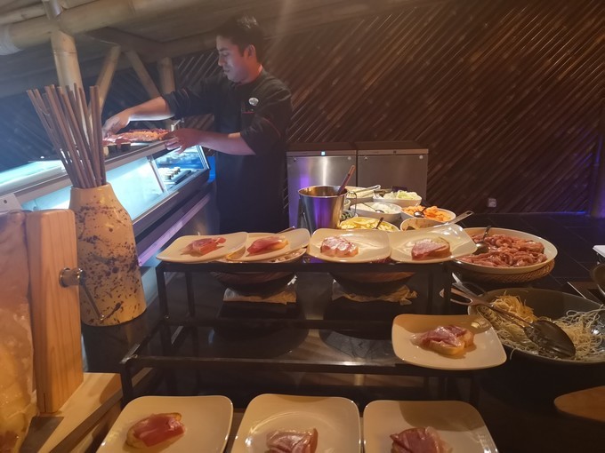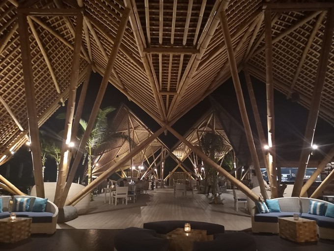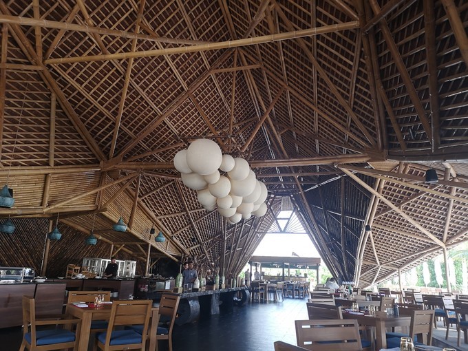 酒店有3家餐厅,我吃过市场餐厅和纬度5.5餐厅,下面的图片是纬度5.5餐厅,他们家餐厅的建筑我觉得还是很特别的,全部是用竹子建立和设计的。