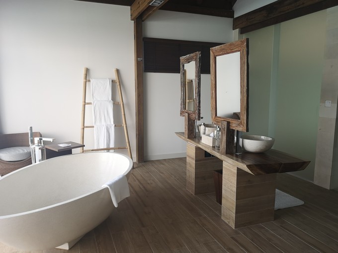 关于房型这一块,WENDY上岛的时候酒店说房间都是满的,水屋其实房型一样,只是位置不一样,中间2排是泄湖,旁边2排是海洋水屋。当然海洋水屋的价格比泄湖的要高一些(因为视野要好一些,遮挡的地方少一些)