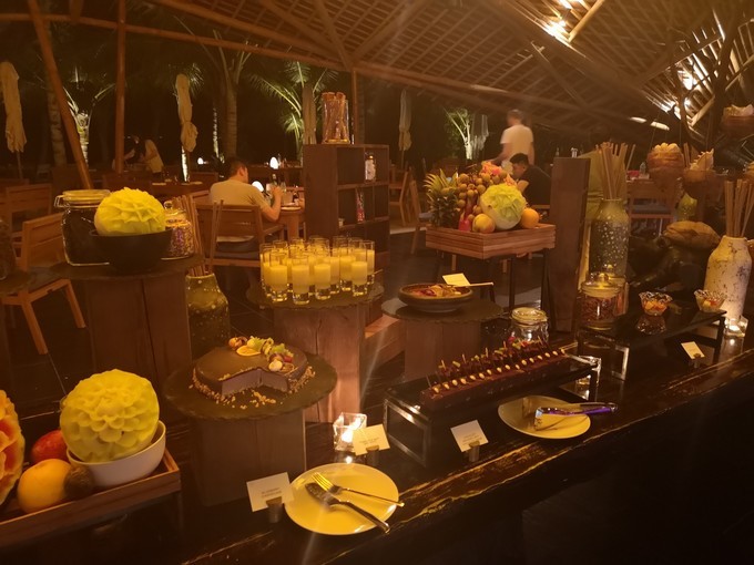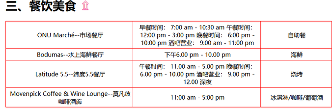 整体餐饮评价:3-4星颗。想要点椰子,基本上没有,感觉可选择的内容也不是特别丰富。问了酒店的工作人员,他们说这个是新开的酒店,然后所有的食物需要空运过来,因为新开的所以会比较慢,需要慢慢去完善。希望后续越来越好。