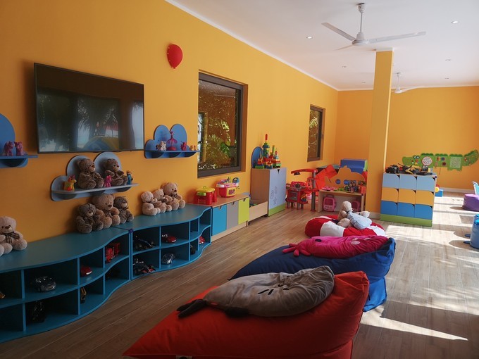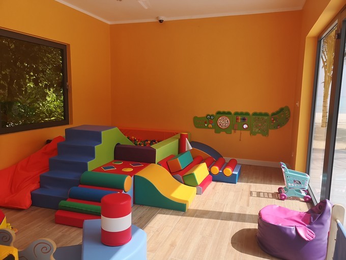 这个是莫凡彼儿童俱乐部的外面,有一个泳池,而且有一些水上活动。里面还有部分。