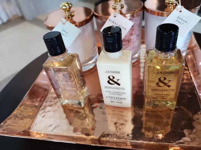 娇丽的洗浴用品使用的是欧舒丹 格拉斯 系列的Jasmin&Bergamote(茉莉和柑橘)孕妇和儿童一样可以使用。