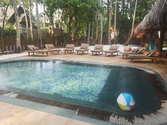 因为我的管家我感觉他一天到晚都带着一个宝宝,是他的小客户叫芭芭拉,我们在用餐的时候,他也会带着他过来和我们一起打招呼,我去浮潜的时候,管家也在活动中心也带着芭芭拉,然后还给我停自行车,最后退房的时候,管家还是带着她和我们道别,我在看房间的时候,也看到其他的管家在带着儿童在玩沙子,所以如果你带孩子来到娇丽,完全可以把孩子送给管家,他会给你1对1照顾