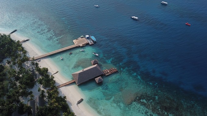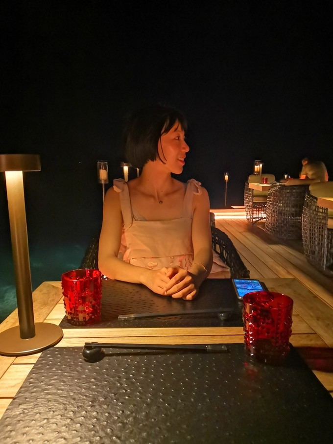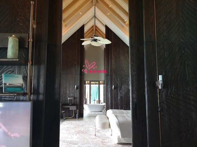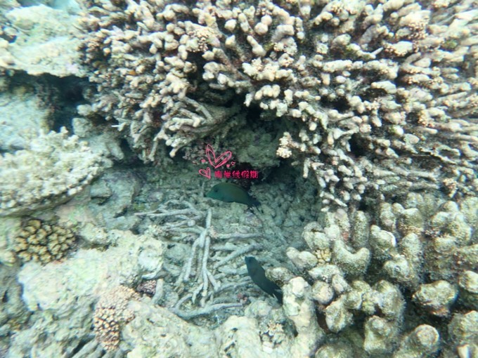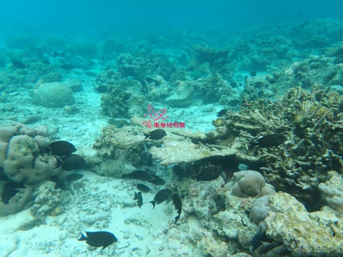 娇丽的浮潜水屋下面虽然没有什么东西可以看,而且我是3月份去的,浪也比较大,但是水屋下面的那个浮潜的层次感特别强,我非常喜欢