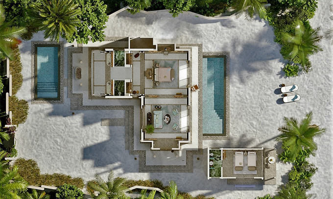 带双泳池的双卧室豪华海滩别墅 : Two Bedrooms Luxury Beach Villa With Two Pools