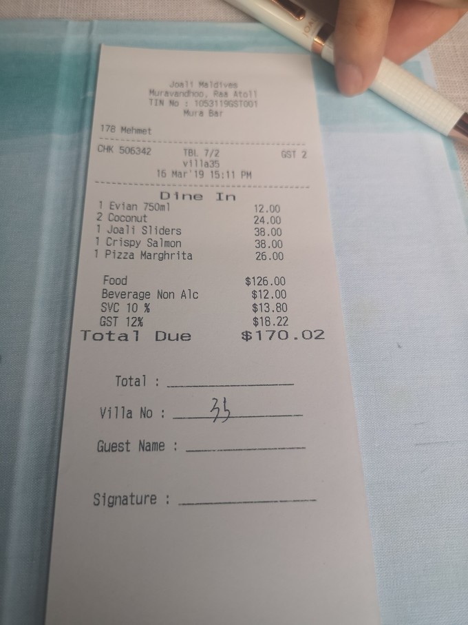 免费HB可以去所有餐厅,可以选择3道菜菜单或点餐(可用餐厅上岛后咨询工作人员),点餐有100USD 每人每天的额度。房间内点餐需收费。