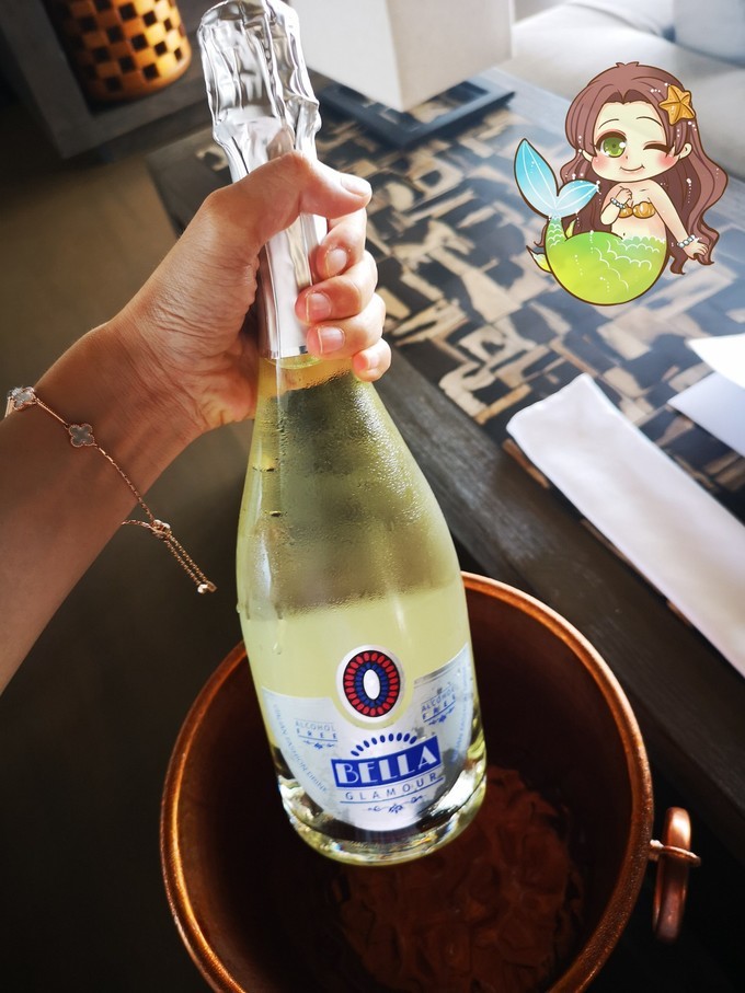 上岛前酒店会发一个私人定制单给到客户,然后客户可以提前预约好想要的项目,然后也可以提前选好他自己在酒店需要的一些饮料或者是酒之类的,我之前填的是我不需要酒精类的饮料,然后酒店的欢迎香槟就给我准备的是无酒精的,我个人感觉非常好喝,然后我说我想要喝很多椰子汁,上岛了以后在小冰箱里可以看到管家给我准备了好多瓶小椰子汁。