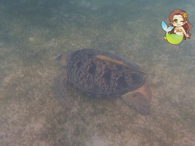 出海的船是差不多开到古丽都的附近,活动中心的这位服务人员说会有很多绿海龟,因为那边有他们的食物。