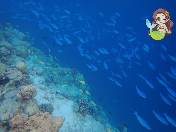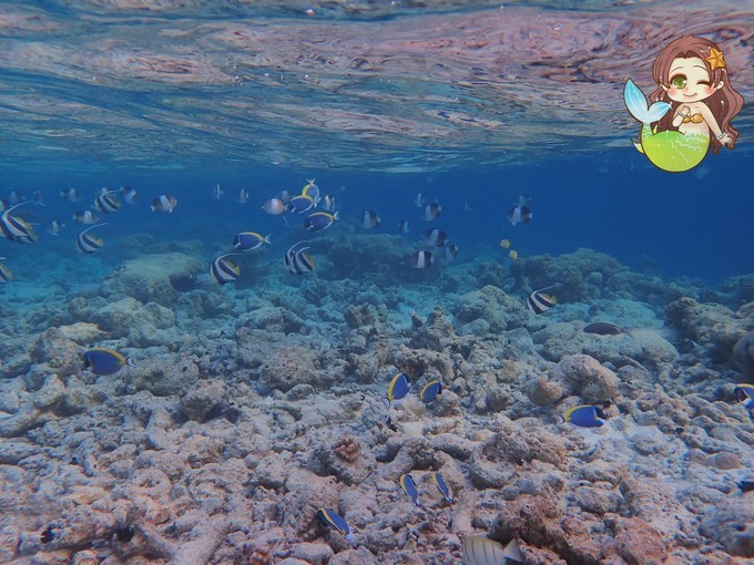 库达度的浮潜非常的简单,只要从水屋下海,你就算不游你都可以看到很多的鱼,如果你想看到更多的鱼,你就有两三米就马上到海沟。