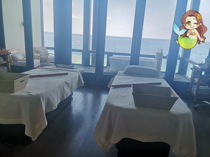 spa我也预约了一次,因为马代那边的阳光太强烈了,我感觉我的脸好像有一点晒伤,然后我做的是脸脸部的spa. 到达SPA馆以后工作人员会征询你的意见,问你想做哪个部位的spa。