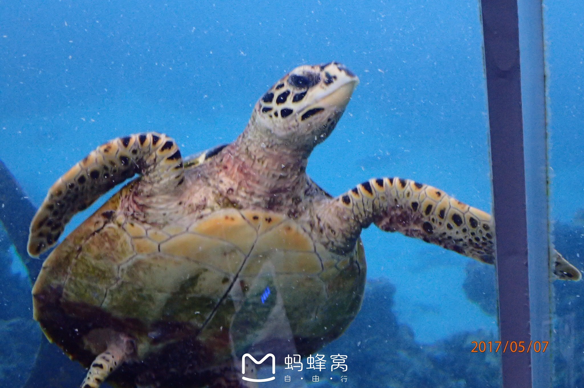 芙拉瓦丽岛度假村吃饭时正好游来一只海龟,引得所有人竞相拍
