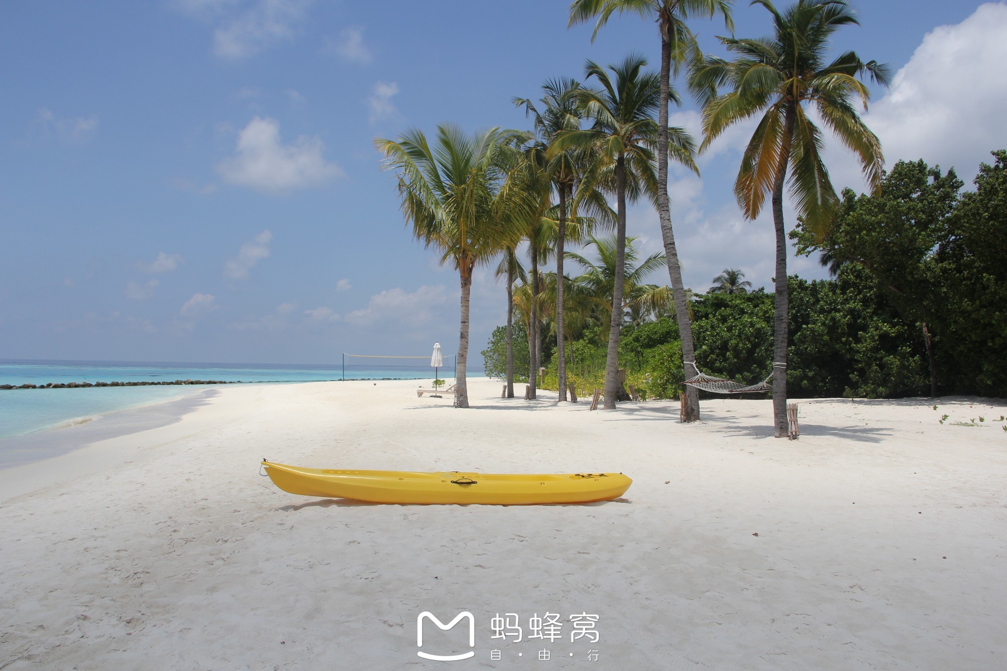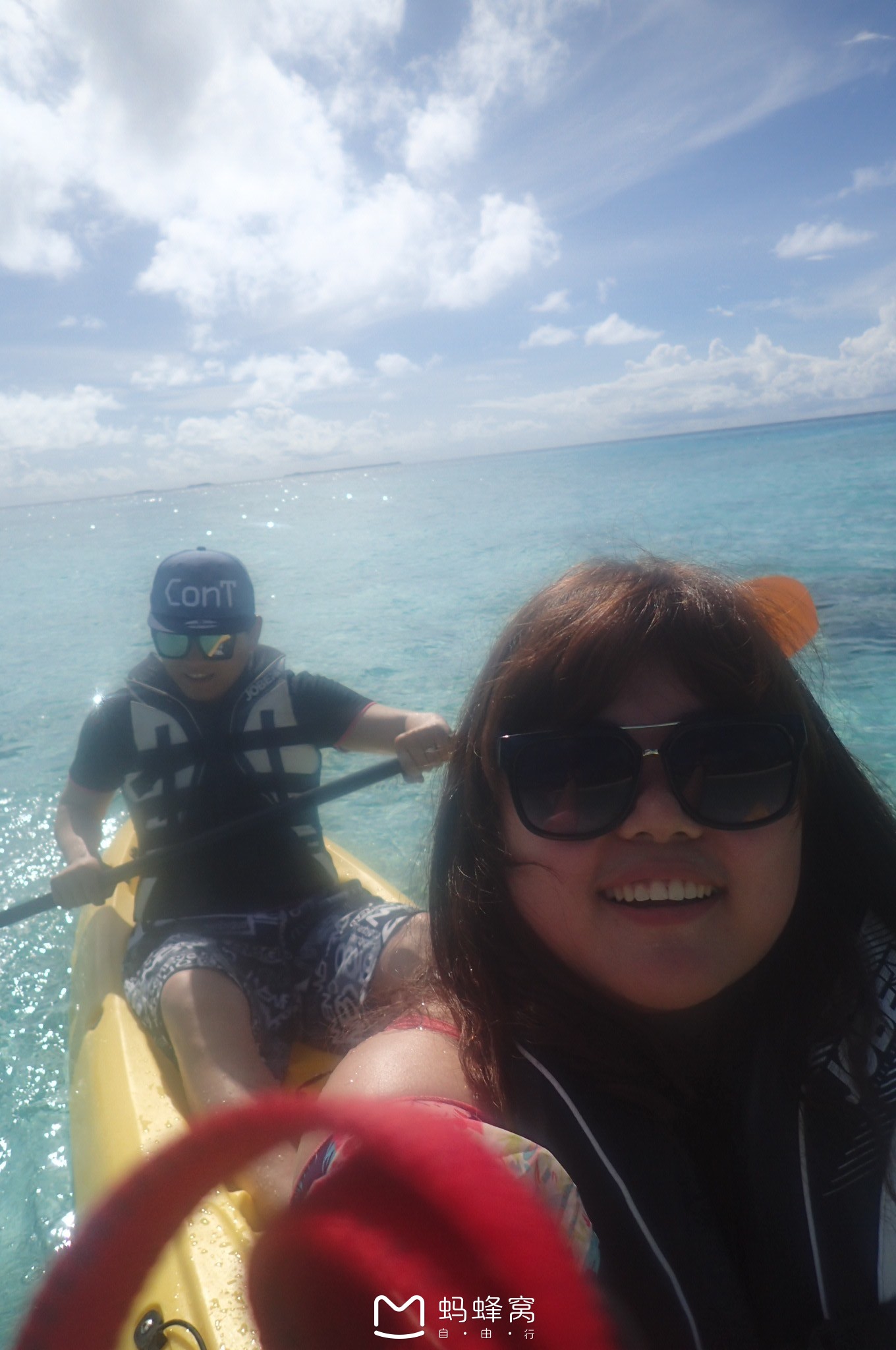 在这个岛上无论是小黑们还是老外,不管是跟你迎面走来还是骑自行车开电瓶车迎面过来,都会热情的跟你打招呼,Good morning、Good evening 、Hello是我们在岛上说的最多的话,一开始觉得很奇怪我又不认识怎么跟我打招呼,最后发现大家都是这样的,慢慢自己也被同化主动跟迎面的人打招呼,感觉都特别亲切舒服,回想一下大家都是有缘人才会在这里遇见。 可能是因为中国人多的原因,这个岛上有好几个中文GO,所以不会英语的小伙伴基本上是不用担心的,我们的中文服务叫mini,一个广东小姑娘,有礼貌而且办事效率很高。多亏了她帮忙约了好多项目,这里特别说一下蜜月有一个15分钟免费的spa,建议一上岛就去预约比较好,这个岛上做SPA的人非常多,本来有一对夫妻打算离岛那一天去做一个全身SPA,结果已经被告知最近的时间在我们离岛后两天,我也是超级服气的。但说实话还是比较舒服的,给我按的力道适中,给老公的力道比较大。 芙拉瓦丽岛上可以免费玩香蕉船一次,但是建议没有玩过的还是不要尝试了,超级累的,而且那天的太阳超级大,晒简直不行不行的了。