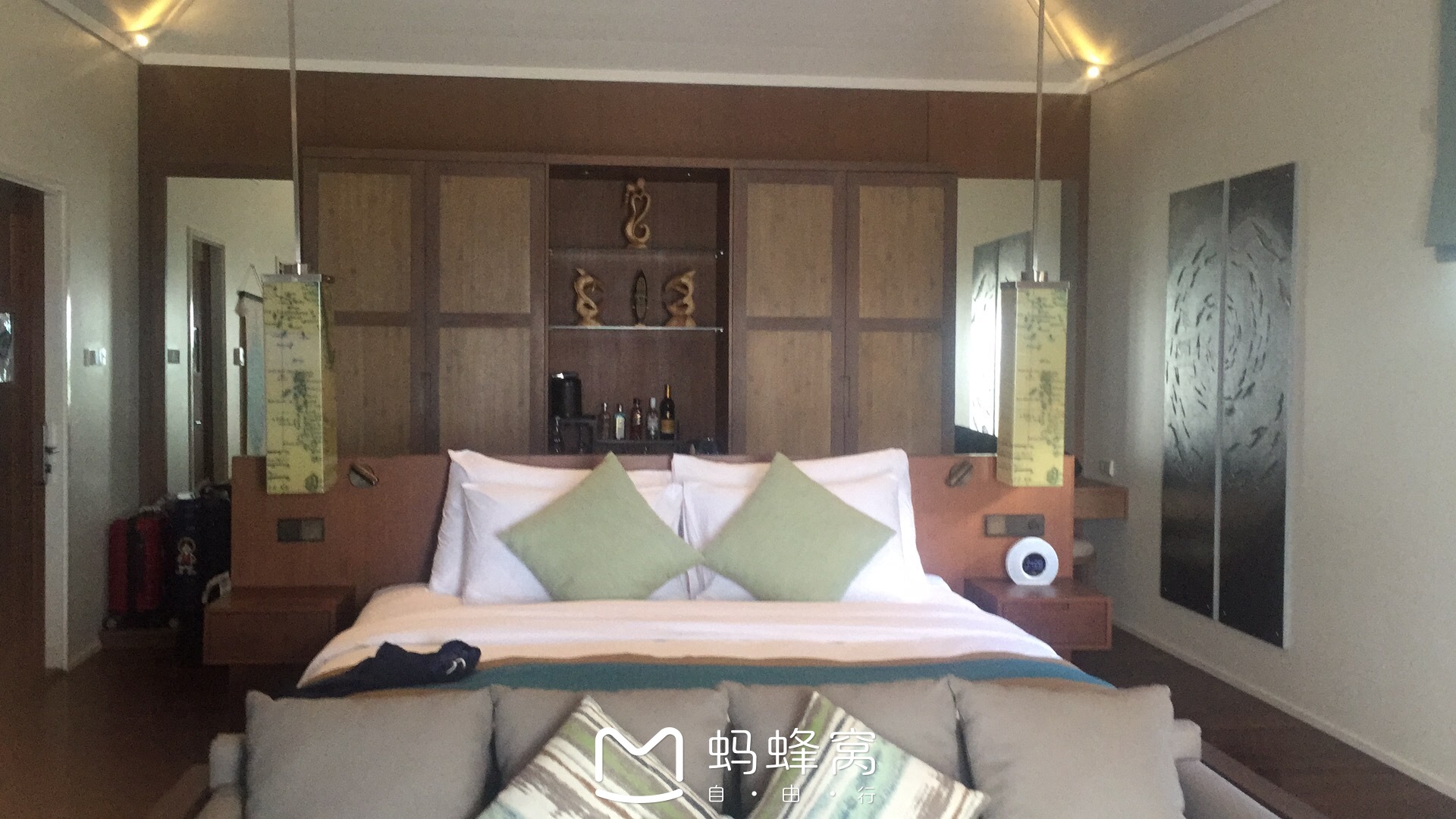 芙拉瓦丽岛度假村房间内部,其实都是一样的没有区别 第二天一整天都在下雨,正好中午可以有空去吃海底餐厅。来芙拉瓦丽最重要的就是要去这个海底餐厅了,我提前咨询了一些驴友的建议提前一个多月预定了在岛上的水下餐厅午餐,这个午餐是一定要提前定的,因为岛上大部分都是HB,本来午餐就没有,所以午餐特别特别特别的抢手,想上岛再去预约的亲们可以放心,你是绝对约不到午餐的,土豪的话可以尝试下280刀的晚餐,事实证明和150刀的午餐没什么本质区别,水下餐厅就是要个情调,光餐食的话确实不值这么多钱。
