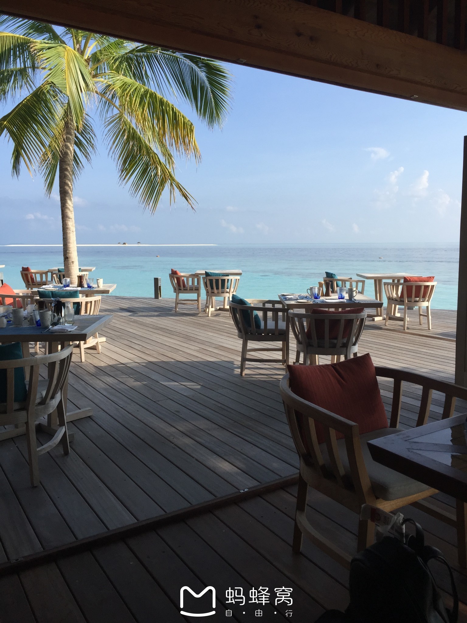 芙拉瓦丽岛度假村餐厅的一角,就在海边,看着海景吹着海风好不惬意。
