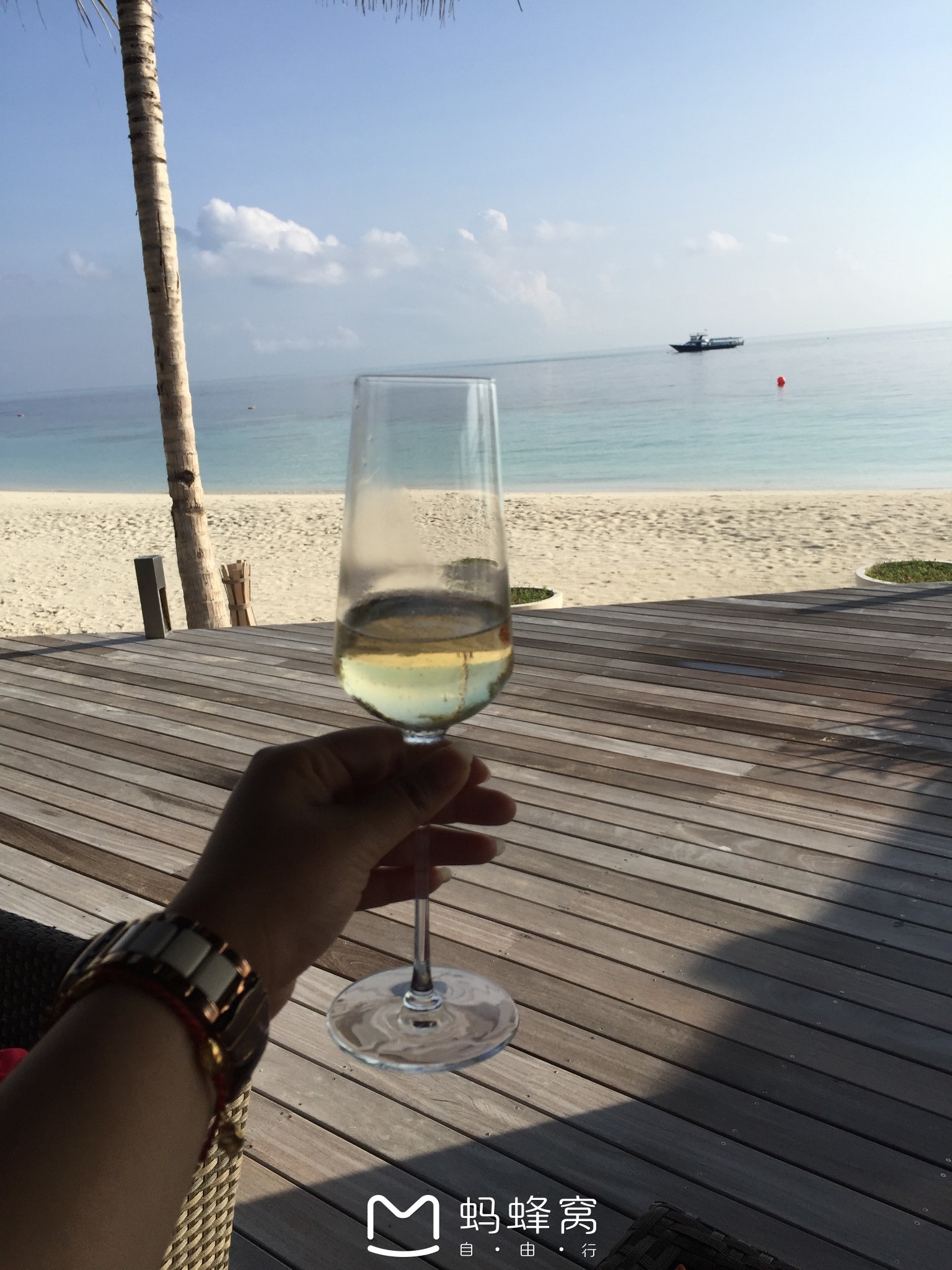 芙拉瓦丽岛度假村欢迎香槟,酒劲还是挺大的