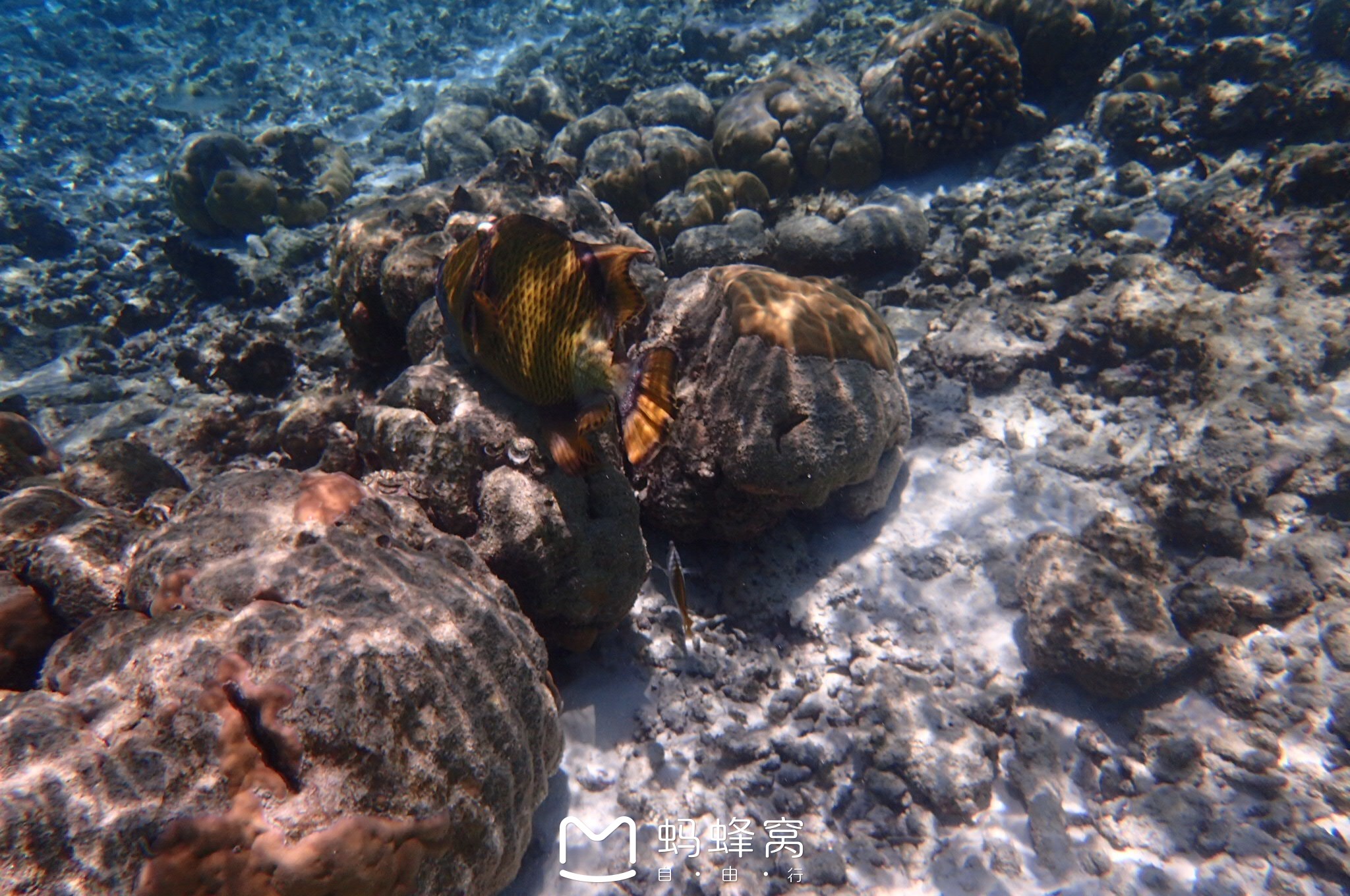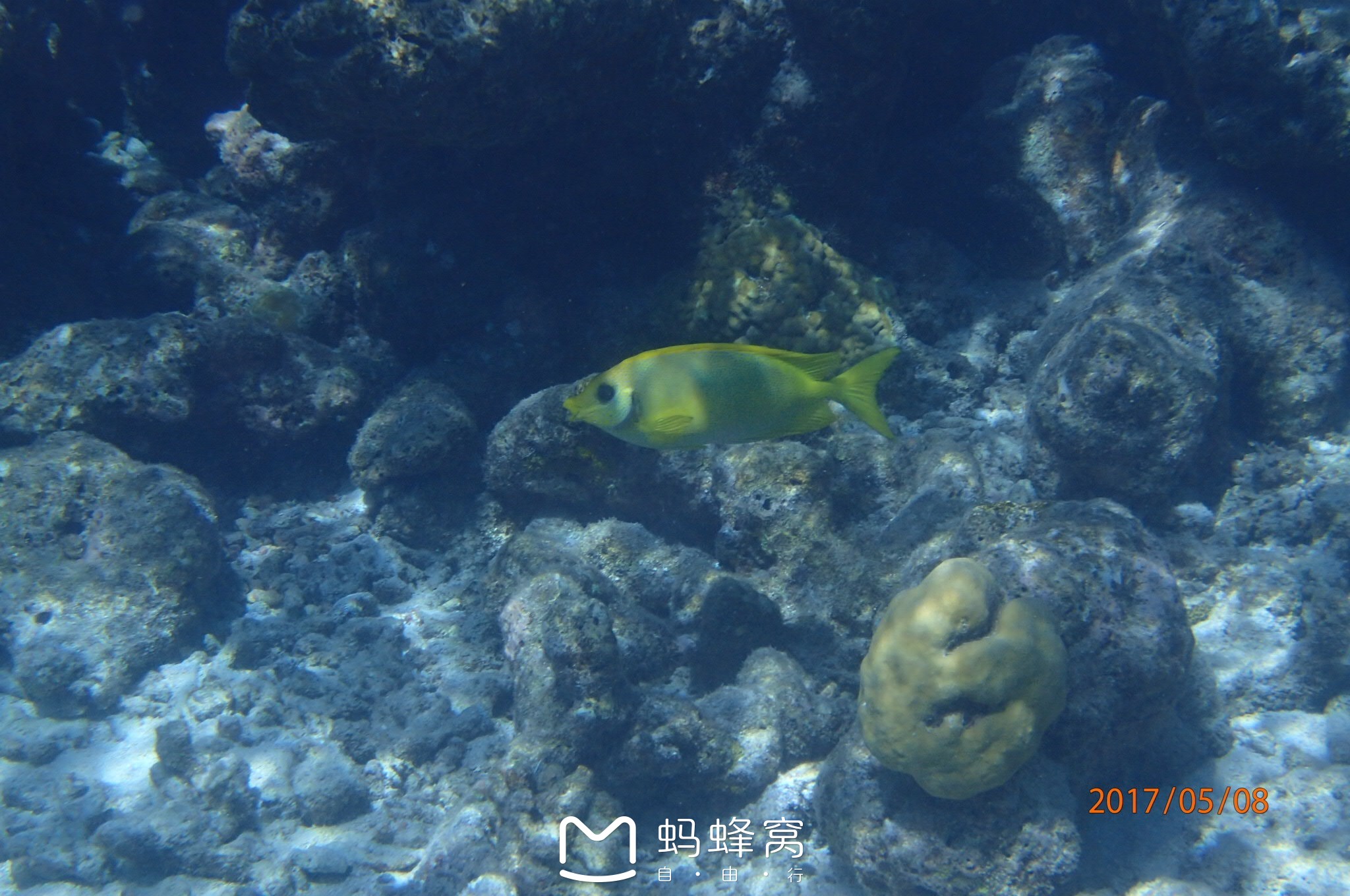 芙拉瓦丽岛度假村这一张就显示我已经游到很深的地方了,前方珊瑚礁已经没有了,快到海沟的位置了。其实提醒大家一定不要光顾着看鱼拍照忘了距离。