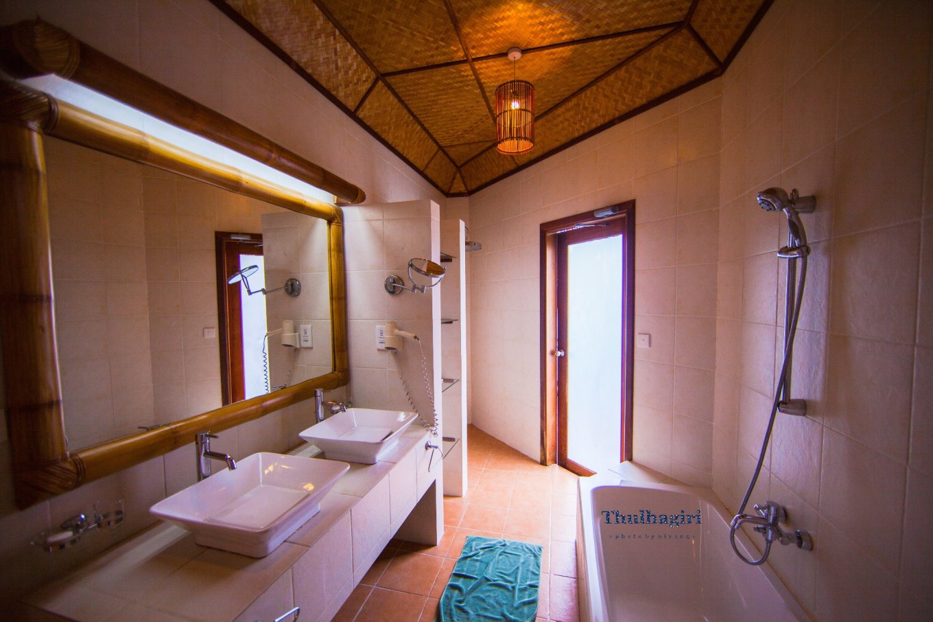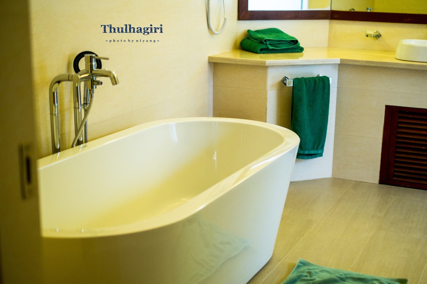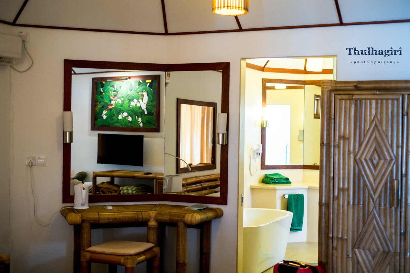 是的 水上屋的卫生间很是宽敞 有一个独立淋浴的地方和一个大浴缸 另外有一整面墙的柜子和抽屉可以给你吊挂衣和存放一下小物件 还配备一个保险箱 不过唯一的遗憾可能是浴室里看不到海景 不想有得地方可以一边泡澡一边看大海 而且也没有透明玻璃的地板方便你看脚底下游来游去的鱼儿
