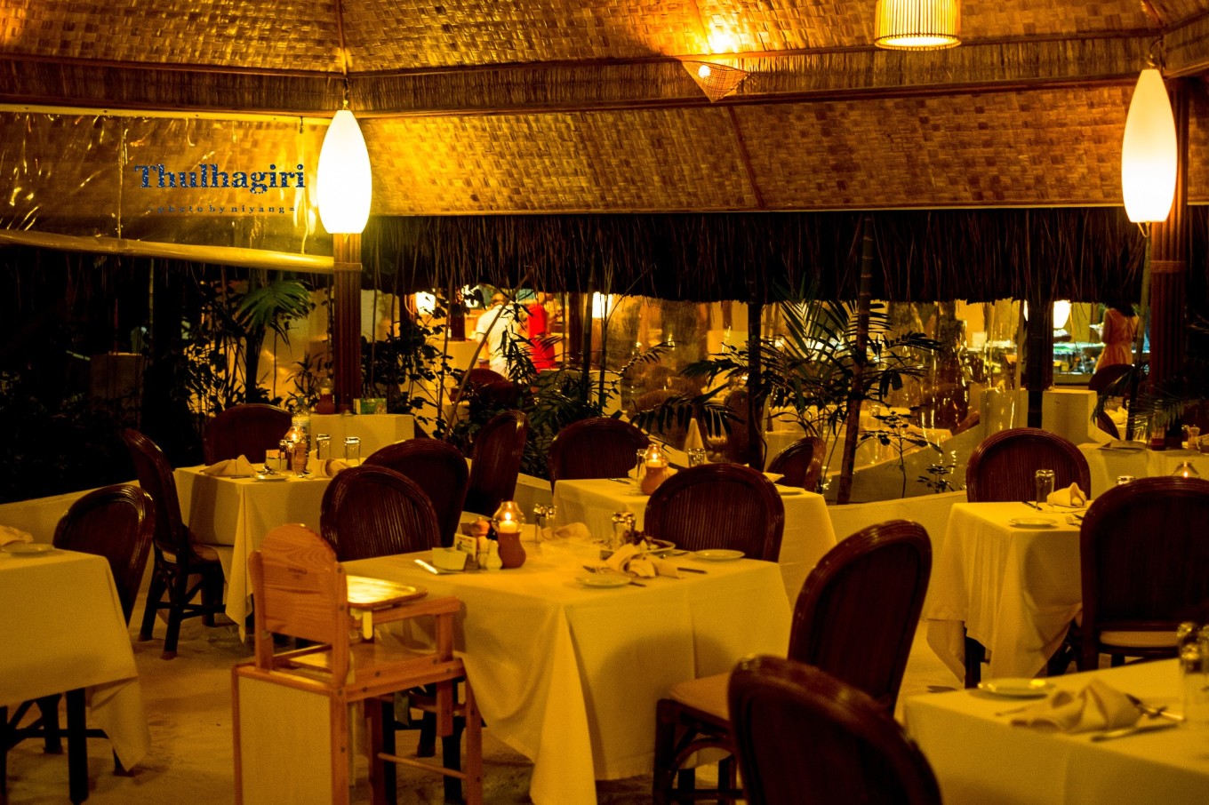 不多 这里客人少 走到哪里都很安静 吃饭的时候 是见到人最多的时候 但是也从来坐不满 室内室外都有桌子 室内室外都有桌子 室外的对着泳池和大海 在那里吃早餐最享受了