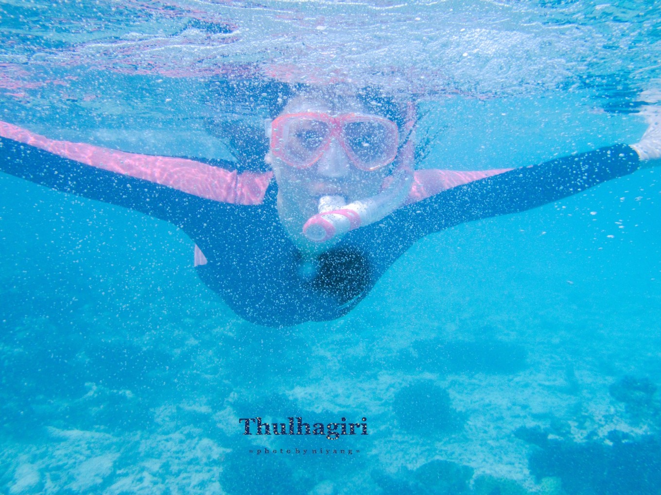 一是位于水上屋尽头 那里是浮潜的最佳地方 阳光直射清彻的海水 一眼就看到海面下好多漂亮的鱼在散步 二是当地的潜水中心教练推荐是大白沙滩那边蓝色浮球出去 那条道是专门为深潜的人准备的 浮潜的人从浮球那边出发 三是码头那边是一块区域 但是 部分有警示牌警告不要游泳 所以没穿救生衣千万不要去那里