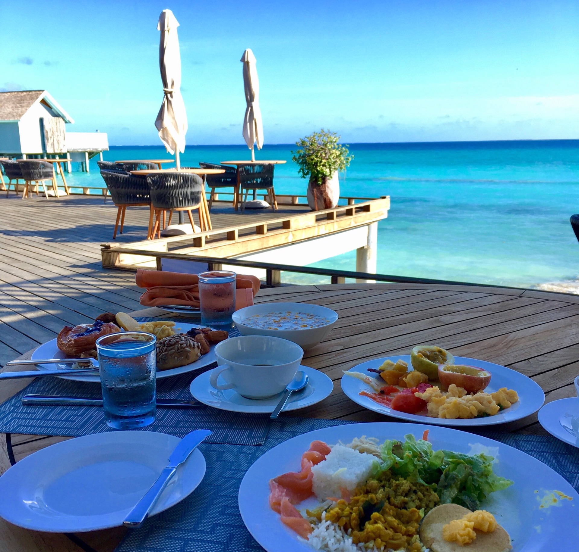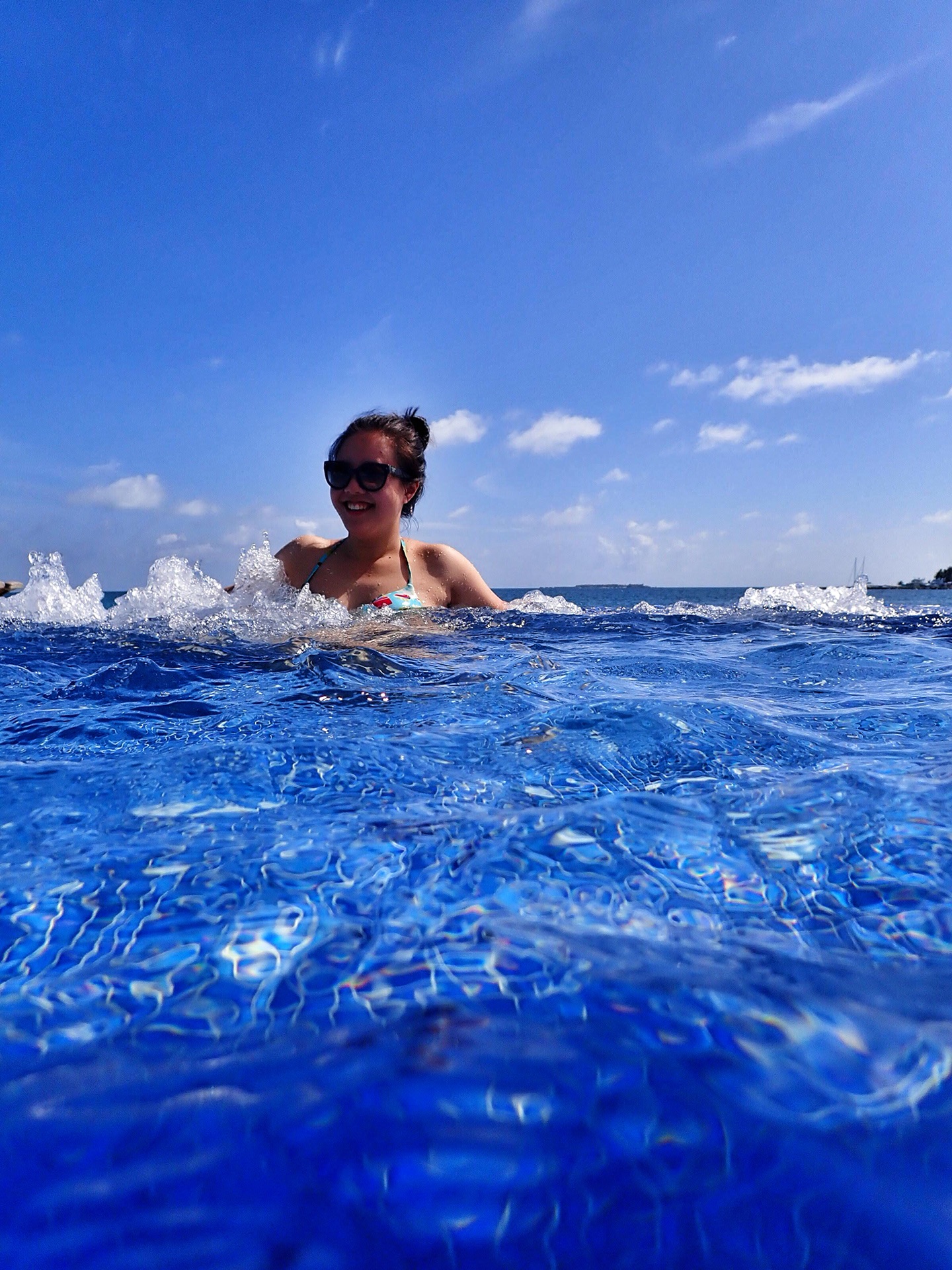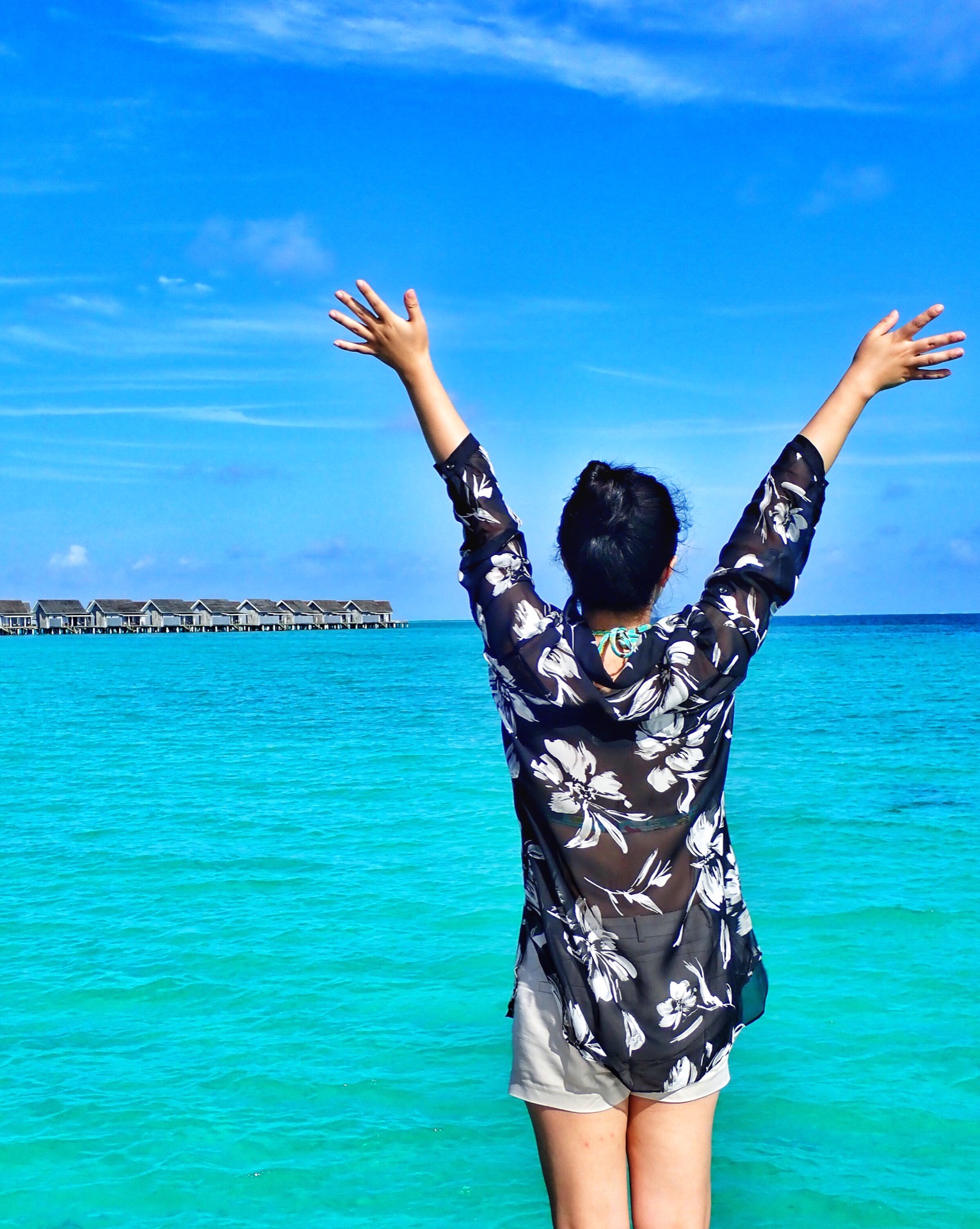 晚上会有换房的时间,第二天早上十点换房,把行李放在门口就好,门卡在大厅接待处去拿。第三天终于迎来一个好天气,真的是好到你看见了不一样的库拉玛蒂,从天空到海水从水下到水上,一切都美得不太真实。