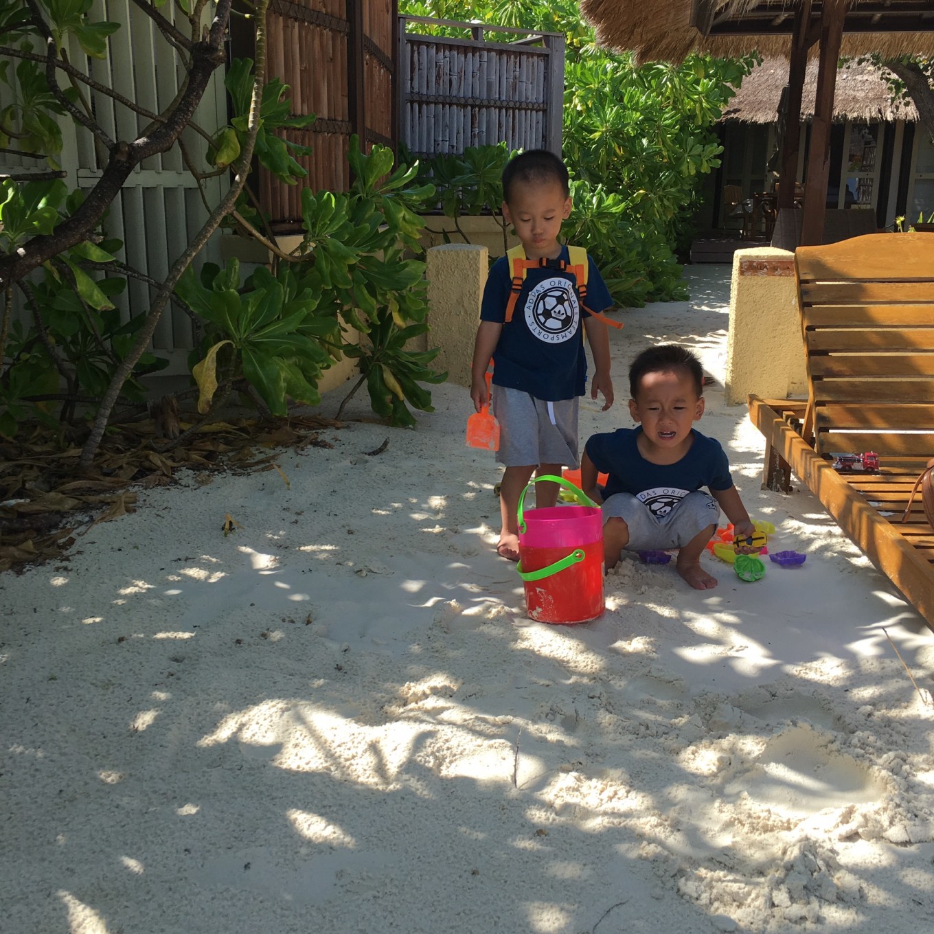 今天的小宝一直没有再发烧,我这颗提着的心也终于放下去了,两个宝宝开始一起玩沙玩水,看着健康的小宝,我觉得心情豁然晴朗了,有了孩子之后,最大的愿望就是宝宝健健康康。 今天才有心情和孩儿小姨去预约了SPA,才有心情去岛上四处看看,瓦宾法鲁岛确实不大,虽然浮潜大牛,可是我们去的这几天风浪很大,竟没能去浮潜,确实遗憾。