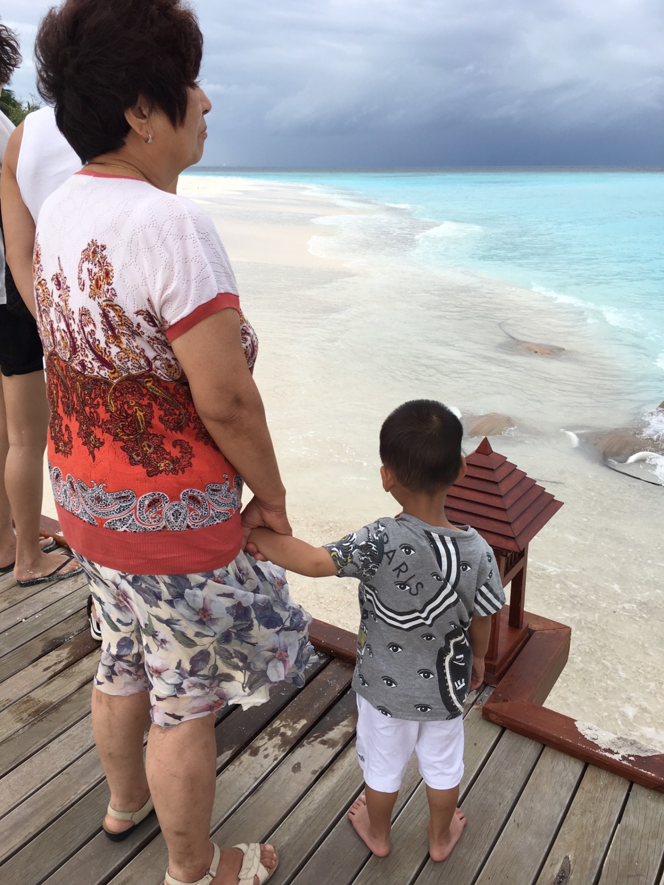 在岛上的日子无非就是吃吃睡睡,玩玩水玩玩沙,做做SPA,看看海龟,逗逗海鸟,瞅瞅魔鬼鱼,这几天下来并无二致,孩子们玩的欢快,老人们闲的无聊,我们乐的悠闲,我妈听说有些外国人在这里一住几十天简直不能理解,没有小伙伴唠嗑,天天待下去可不得发毛了!刚好有个广州老太太上岛,我妈就没事找人唠嗑,回来还跟我们分享,其实这也是我妈妈一特长,不是吗? 天天西餐给老太太吃的也够呛,孩儿爸先见之明给买了些零食泡面,不然我估计我爸妈即便一天三餐也是吃不饱的。