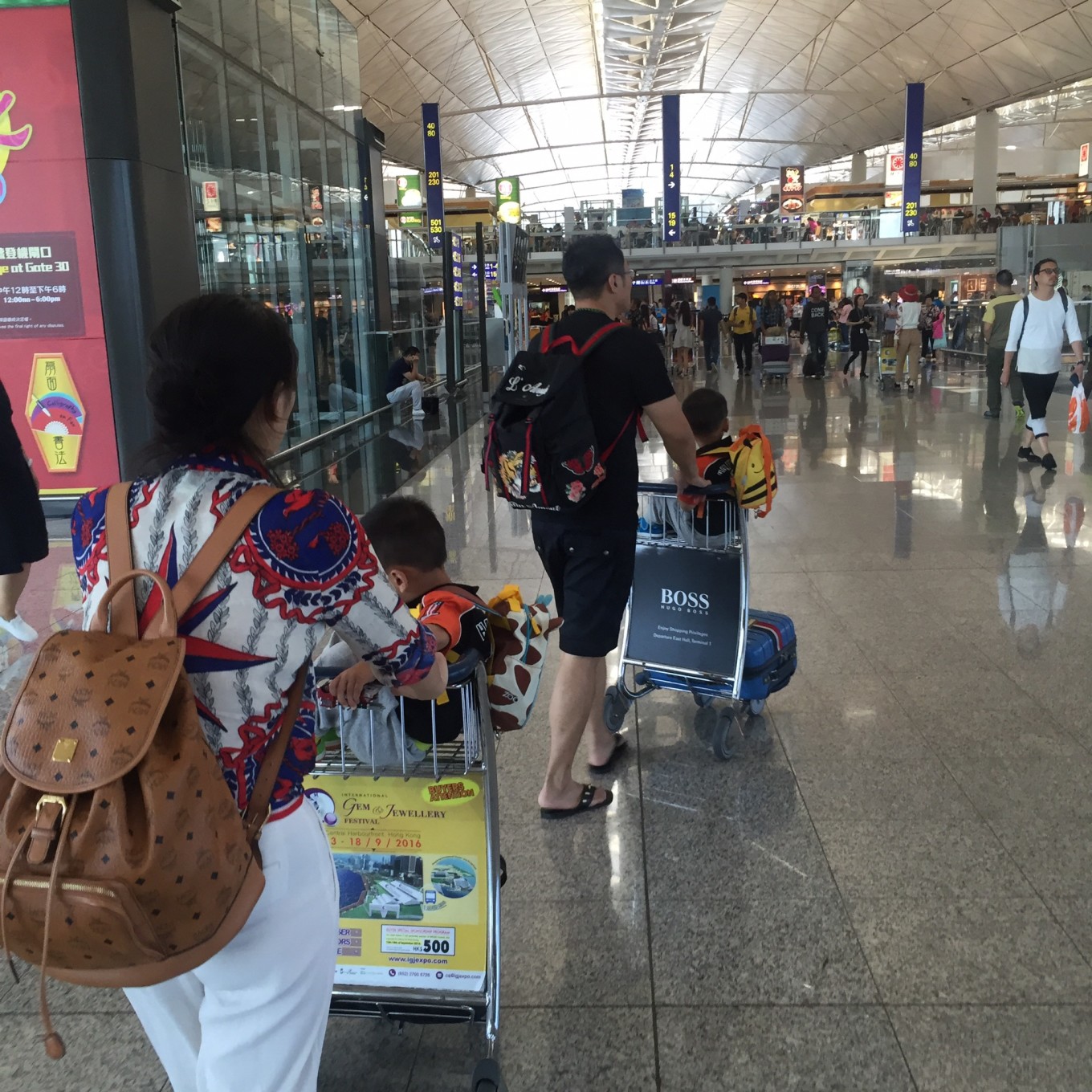 浩浩荡荡我们一行人来到咸阳机场,咸阳机场出境候机厅并不大,也没啥吃的逛的,也就无聊的等着起飞,可是我家宝宝们许久没有出门,兴致高涨,各种瞎跑,没办法我们男孩就是精力旺盛,黑线~ 三个小时的飞行我们抵达HK机场,明天才飞马累,今晚入住--东荟城诺富特酒店,沿着机场指示牌能够轻易找到酒店免费大巴,我们即坐即走,酒店就在东荟城商场上面,趁楼下超市没有关门,我跟孩儿爸趁机采购一番,不过大晚上孩儿爸买了一堆刺身我也不知道他是想咋。 孩儿小姨是从北京飞往HK,抵达时候已经凌晨,她一个人坐这么晚的航班,整的我一直担心没睡着觉,最后安全到了才放心,孩儿小姨说她碰到变态埃及男,老是套近乎,玩跟踪,整的我们也是后怕,以后可不能让她一个人坐太晚航班。
