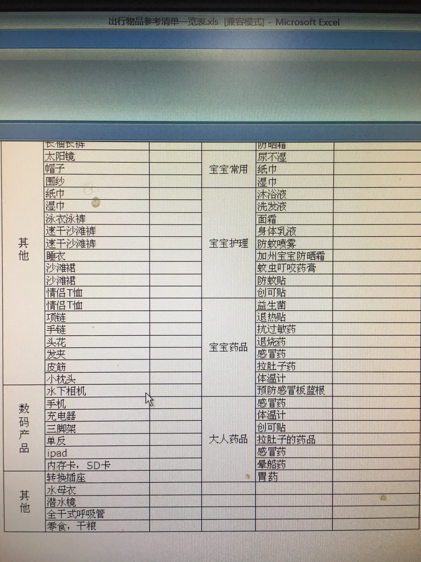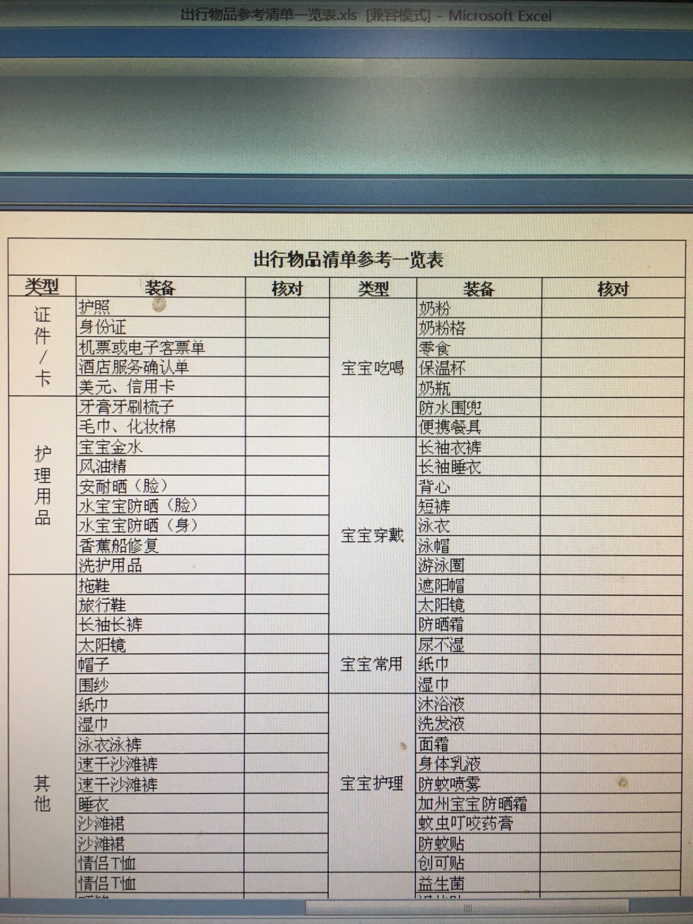 偷懒了,直接把我的清单一览表拍照,因为不会上传excell。 万事俱备,坐等假期!