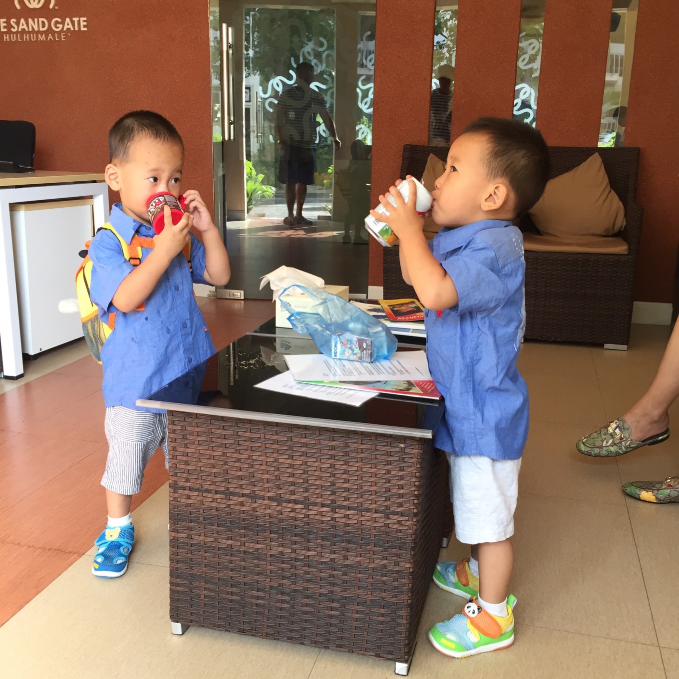 早上在机场岛酒店吃过简单早餐,酒店工作人员把我们送到码头,然后乘坐快艇上岛。期间出了件意外的事,就是小宝发高烧了,当妈的我突然心情DOWN到了谷底,因为我没有带发高烧的退烧药,我只带了柴桂这种应付38.5度以下的退烧药,我顿时觉得自己怎么这么没脑子,准备这么多还是忘了这么重要的东西,孩子爸爸就急忙去前台那里问到附近药店地址,急匆匆的买回来一瓶退烧药,我查了一下内心其实挺崩溃的,因为这是咱们已经不咋用的退烧药,没办法,孩子如果高烧了,有总比没有好。 忐忑不安的上岛,已经忘了沿途的风景,只是记得,还是那么白的沙,还是那么清的水,可是这突然的意外让我无心去欣赏,酒店的房间中规中矩,面积并不大,但是该有的配套一应俱全,这一天我一直照看着小宝,晚上又发了一次高烧,心里很不安的给小宝喂了一次买的退烧药,整晚没合眼担心他会不会再烧起来,这一天的记忆我都有点模糊,只是记得自己抱着小宝不断的喂水喂药量体温。