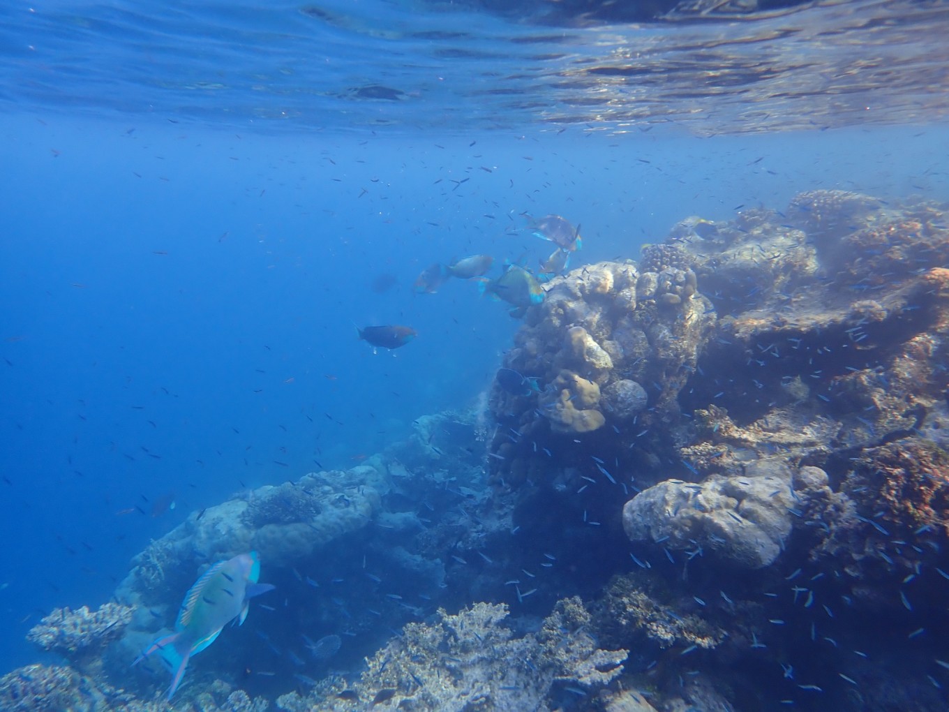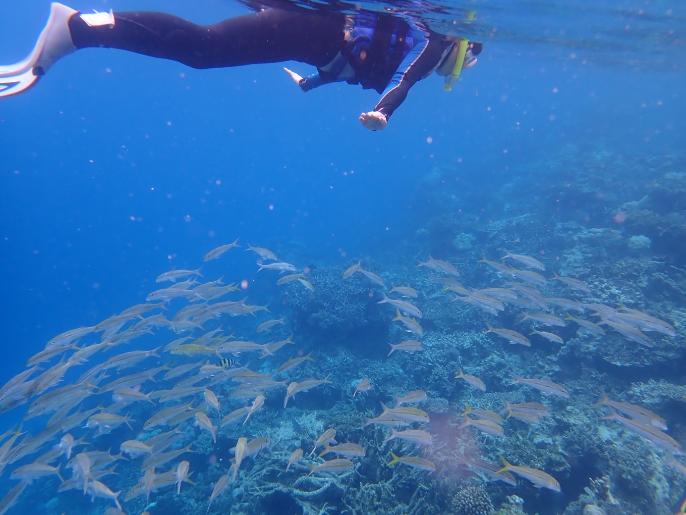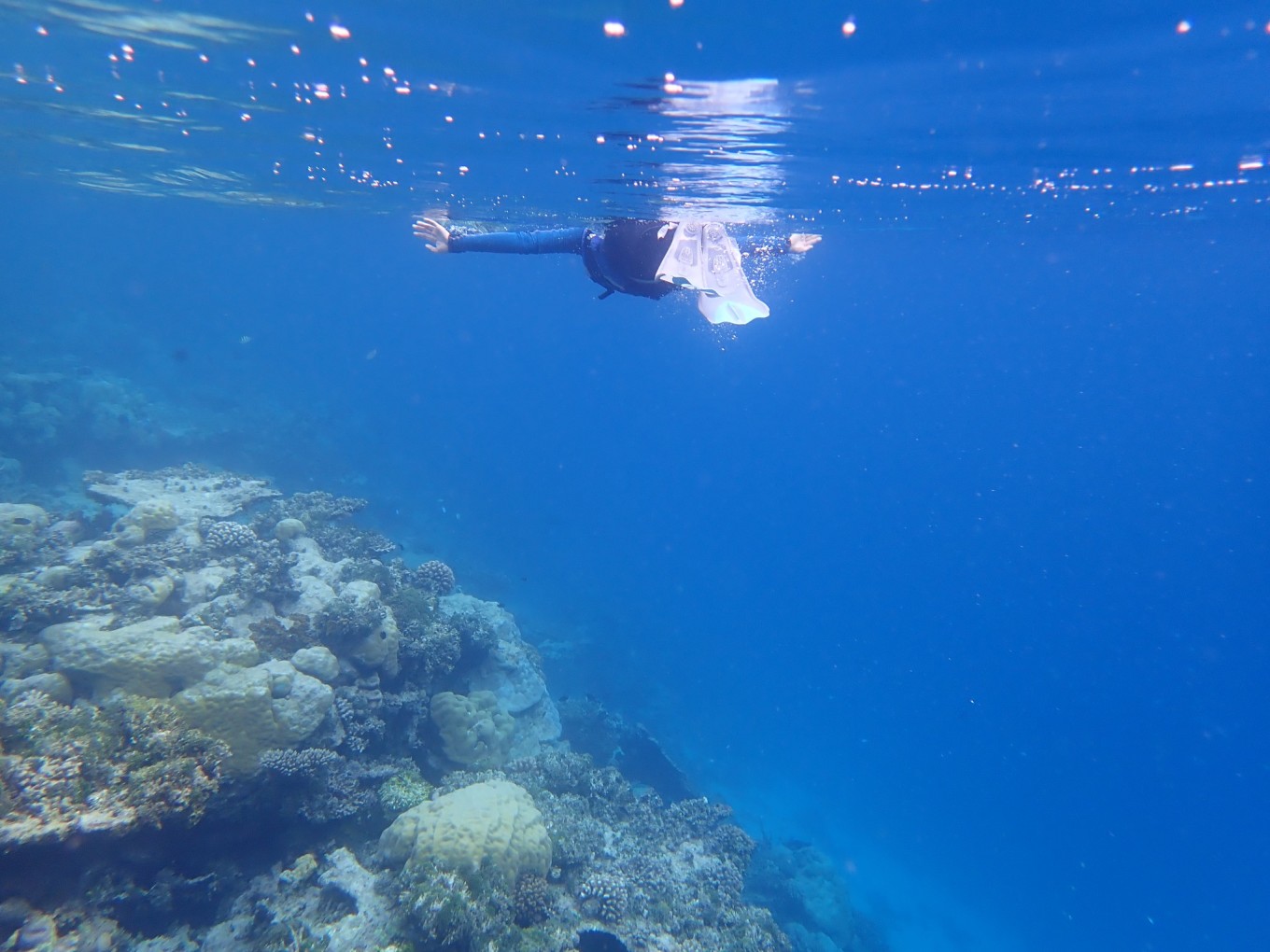 Robison的浮潜环境很好,有很多颜色漂亮的珊瑚和各种鱼类,我们基本上每天浮潜两次,早上吃过饭去一次,下午4、5点再去一次,浮潜中还偶遇了海龟和鲨鱼,又一次感觉到自己无比幸运。此处就体现了水母衣的作用,我们并没有被晒得很严重。其实我们的水母衣也并不是专业的,上衣是在迪卡侬买的冲浪上衣,裤子是运动品牌的紧身健身裤,完全没有问题。我们在岛上并没有参加其他的水上活动,一是因为看到了海龟了,还有一个是觉得价格比较贵。