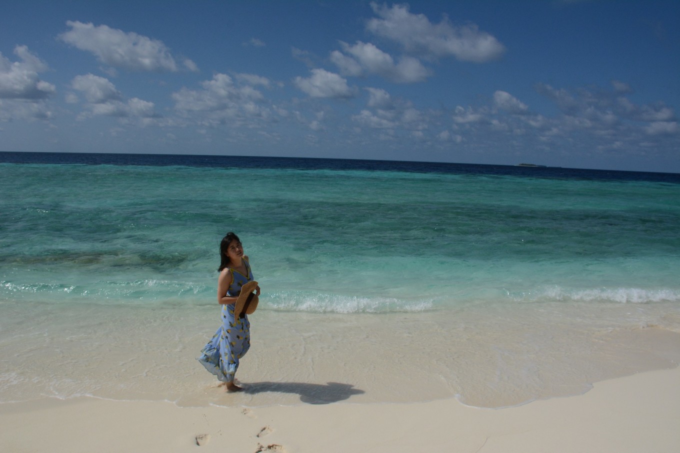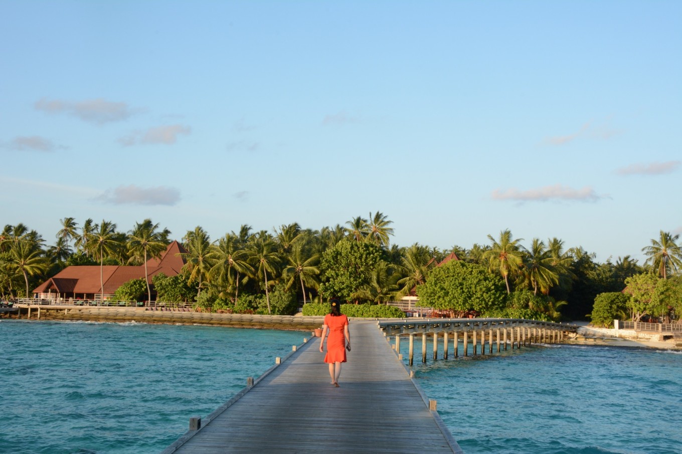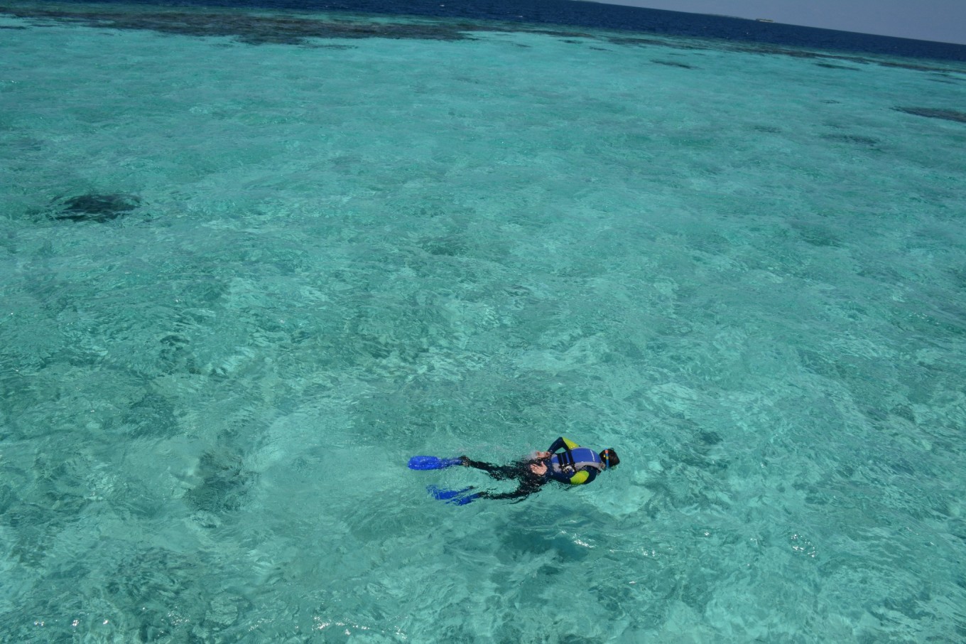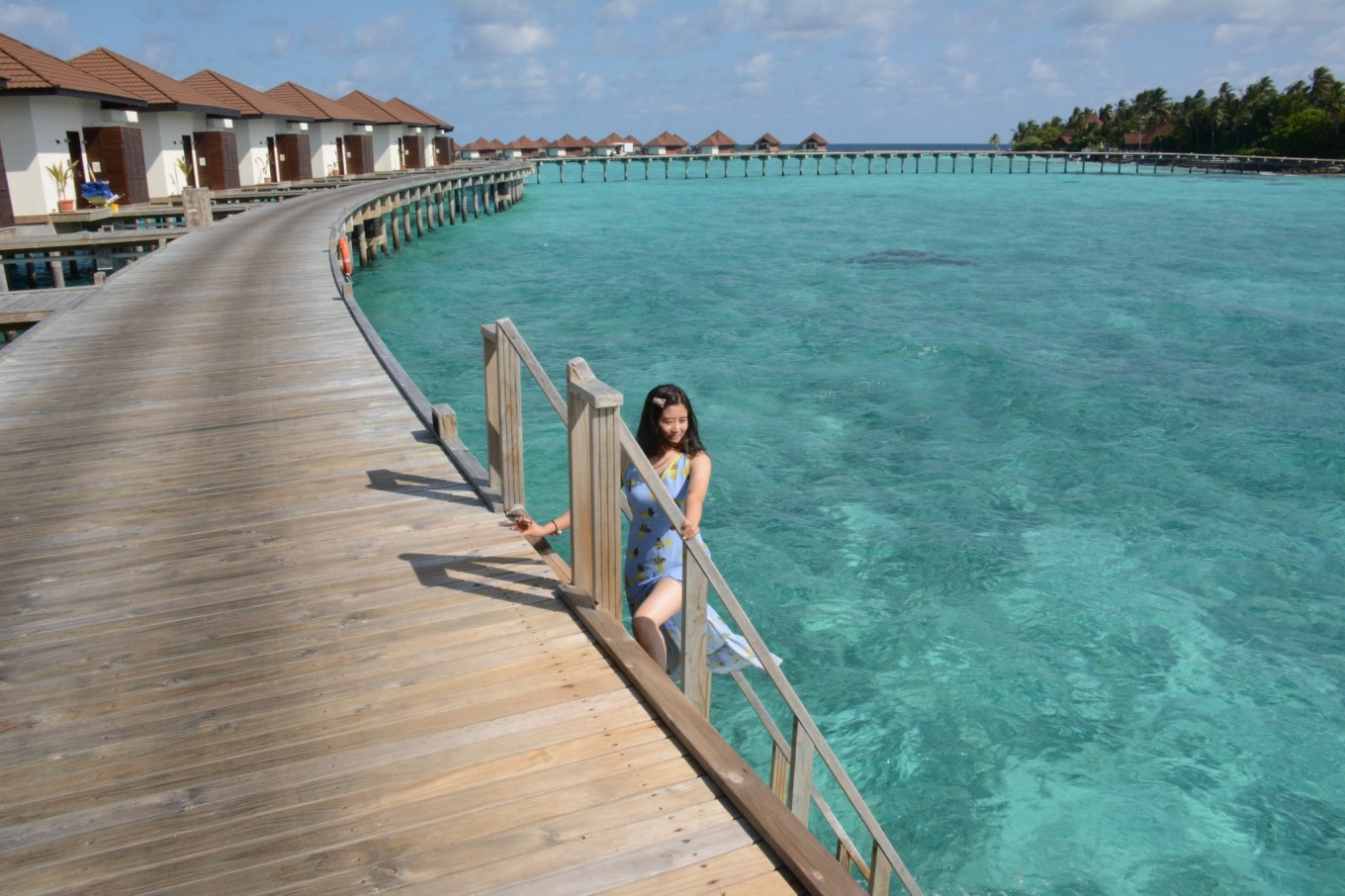 这是我跟DR. WANG的第二次长途旅行,也是我第一次出国旅行。跟DR.WANG恋爱6年,结婚2年,终于在去年6月DR.WANG博士毕业后结束了长达6年的异地。由于他时间紧张,结婚时也没有蜜月旅行,所以他说这次算是弥补一下当时的遗憾。DR.WANG在读博期间已经去过了美国、加拿大、土耳其等地,我却是第一次出国,但是为什么说是我带着DR.WANG去旅行呢,因为从订机票、选岛到准备东西都是几乎我一个人,真是操碎了心呀。 说到准备东西,我们基本上是按照代理提供的清单准备的,有几点是我切身感受一定要带的: 1、岛上医疗条件较差,除常规药物外,建议携带以下2种:藿香正气滴丸,长途旅行或者水土不服容易引起肠胃不适,藿香正气滴丸能够较好的解决这个问题;碘伏,由于沙滩有些碎珊瑚,可能会碰伤脚,用来消毒是最好不过的了。 2、除漂亮的裙子用来凹造型外,还建议带上一条花哨又凉快的长裤,由于岛上阳光充足,长裤可以防晒,出行又方便,还可以搭配各种上衣。 3、如果近视的话,需要自己准备有度数浮潜眼睛,岛上提供的都是不带度数的,没有准备可就浪费了那么漂亮的海底世界了。 4、水母衣和浮潜袜,由于阳光充足,下水后皮肤很容易被晒伤,防晒霜效果毕竟有限,同时有时控制不好难免碰到珊瑚,可以避免被珊瑚划伤。 由于时间紧张,出发前的最后一天我才收完网购的各种装备,收拾行李,整理心情,准备出发。 去程: 经历了8个多小时的飞行,终于抵达了马累机场,一路上飞行还算平稳,但是飞机餐实在是不能让人满意。到达机场后有举着“Robison”牌子的人带我们去了内飞等候室,帮我们办理乘机手续和托运行李。快到乘机时间时也会有专门的人员来通知和带领我们去安检和候机。内飞等候室里有水果、饮料、甜点和简单的食物免费享用,同时还给了一个WIFI账号,但是我并没有连上。