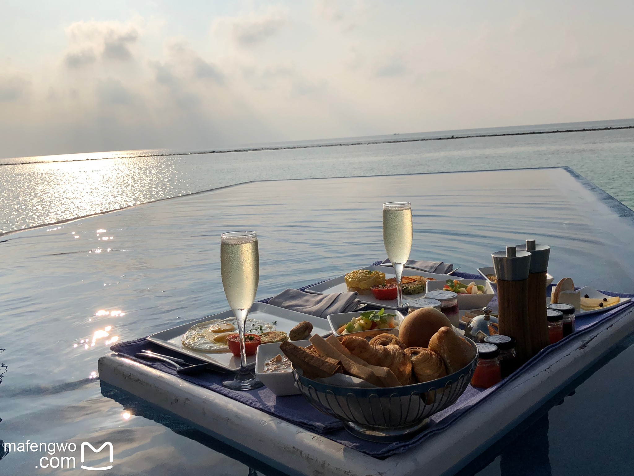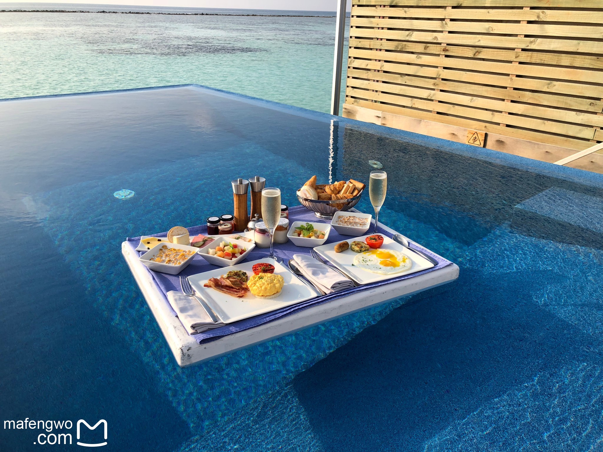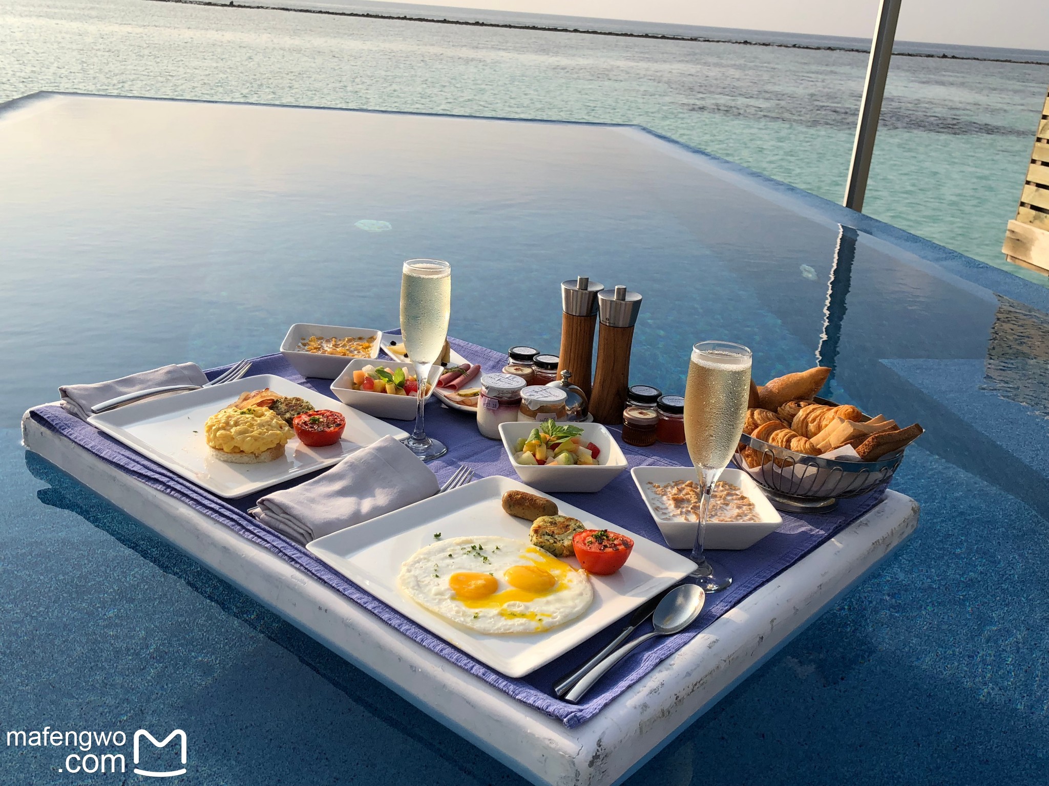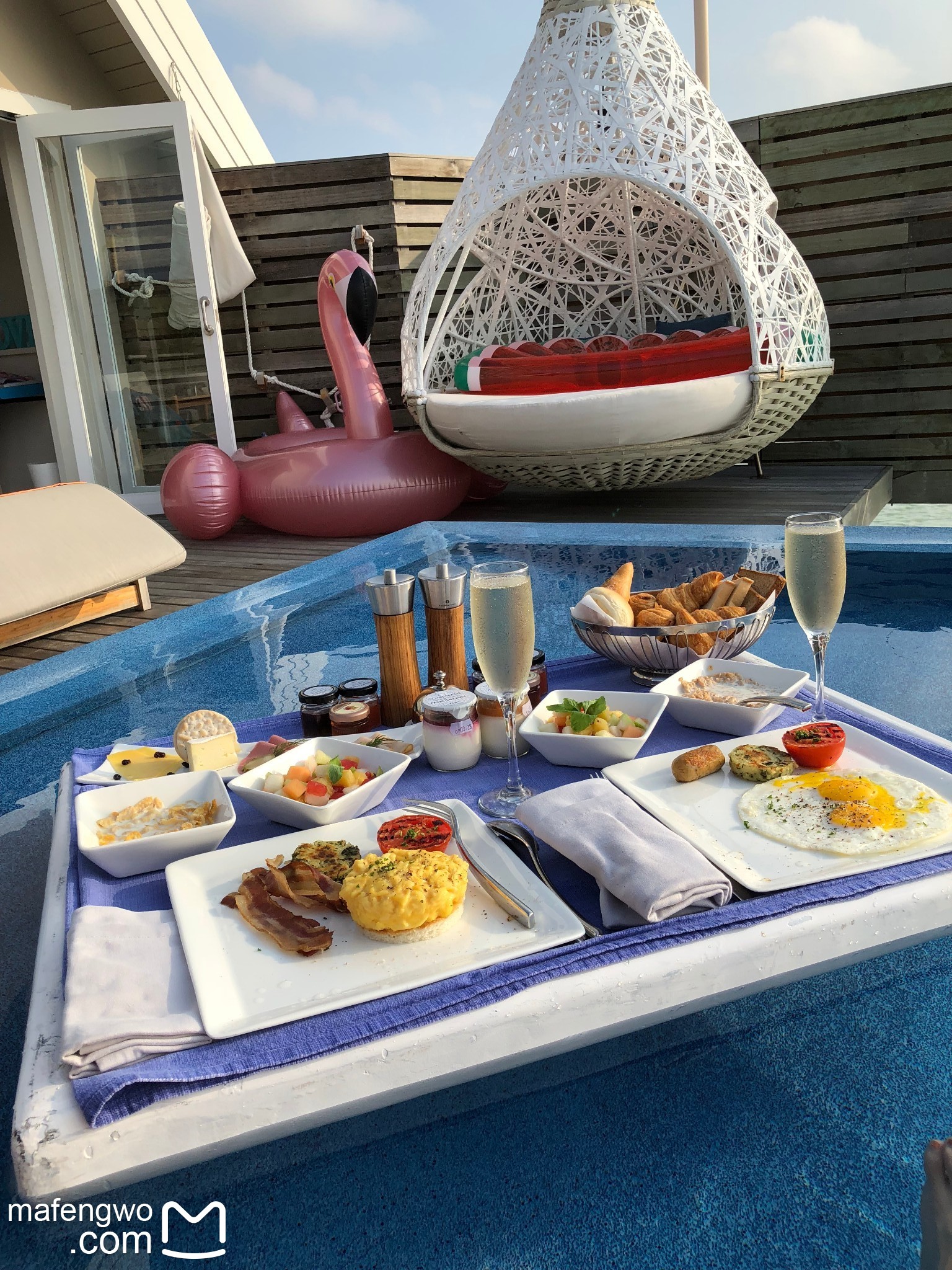 LUX对于前来度蜜月的新婚夫妇有很多优惠赠送,Wendy小姐姐帮我们提前预定了LUX特有的蜜月套餐,水上漂浮早餐(4晚都住水屋的才能申请),海上垂钓,蜜月铺床布置和专门赠送了果盘和气泡酒。特别值得一提的是漂浮早餐,早上7点专门是两名小黑专程上门布置,量很充足,种类也很多,关键是摆盘很精致,拍照党首选。