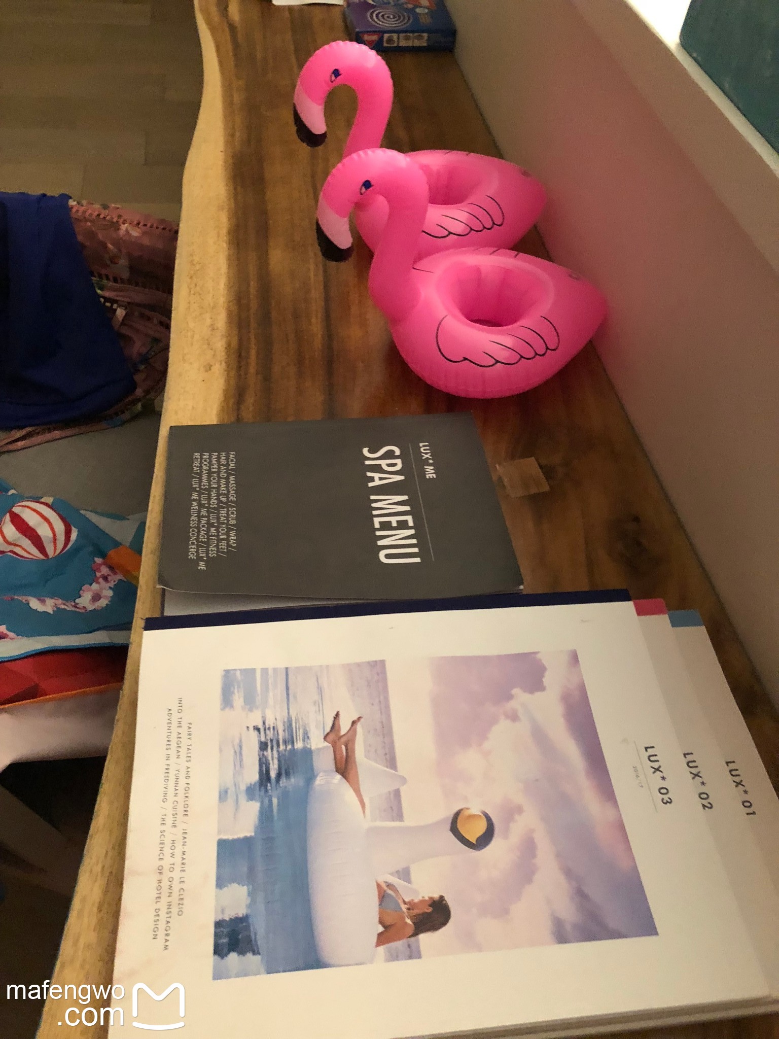 LUX比较有名的是SPA,对于我和我老公这种很喜欢做身体的人来说,到哪儿都是必做项目。这也是我们在岛上花销大头,针对蜜月旅行的新婚夫妇,LUX有30min免费体验赠送,做完我们就直接要预约了岛上有名的日落SPA,因为是在水屋里感受,而且地板有一块儿玻璃可以直接看到底下的鱼和生物,这点很赞,加上SPA的水屋是看夕阳绝佳,我们就直接预订了,就是价格相对较高,我们两个人走的活动价都要将近2000人民币。后面我们还做了一次泰式按摩,我觉得一般,价格和税都很高,税都要100刀,想体验的小伙伴可以推荐做一下有名的日落SPA,泰式没有在泰国体验的舒服,不推荐。总体SPA我俩就花了5000+的人民币,就是岛上花费大头。