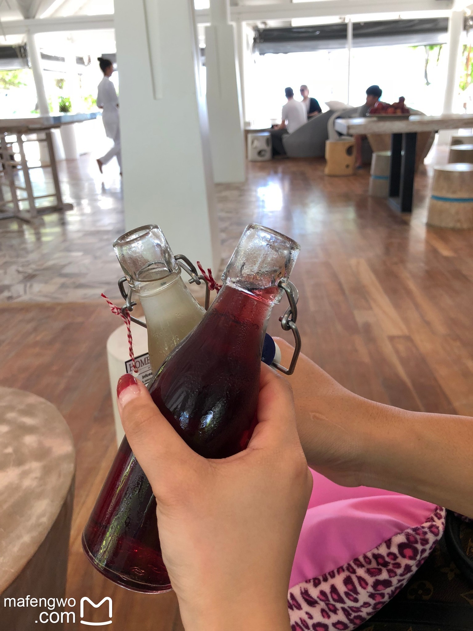 对于上岛方式我和老公都想体验一次没坐过的水上飞机,选择力士的小伙伴真的都选择水飞吧!尚且不说飞机多赞了,光是LUX的水飞休息室都要好到起飞了!里面很多精致小吃和饮料全部免费!免费!免费!重要的事情说三遍~推荐玻璃瓶装的混合果汁,真的很好喝,听说岛上的消费很高,所以我们带了2瓶上岛喝。