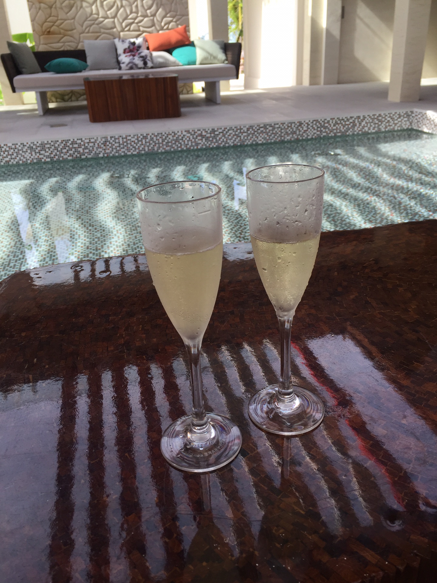 酒店的前台接待处,上岛后,会开香槟给大家庆祝……我的管家,在我给过10美金小费后,就再也没出现过