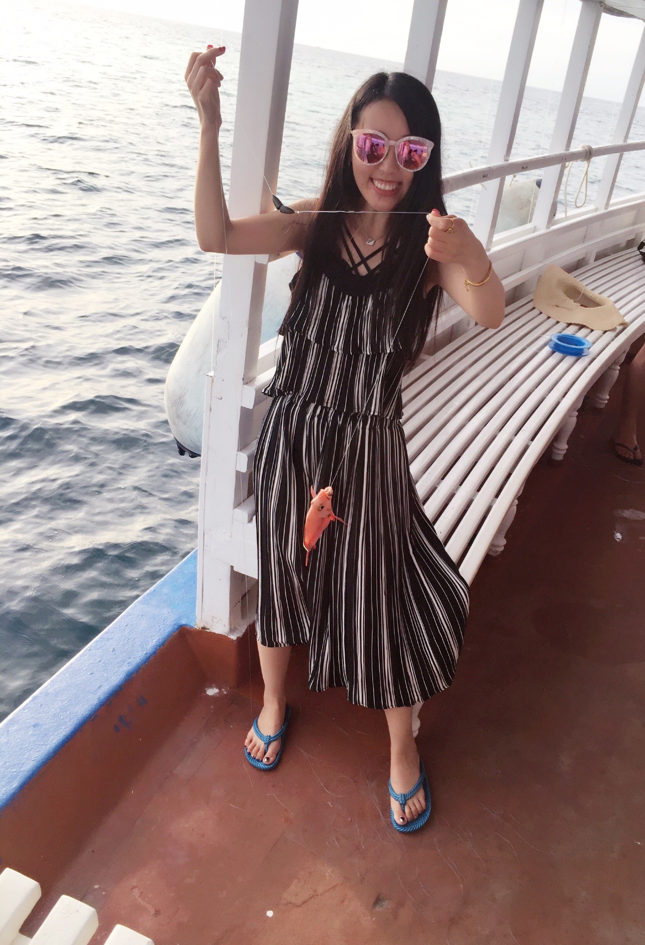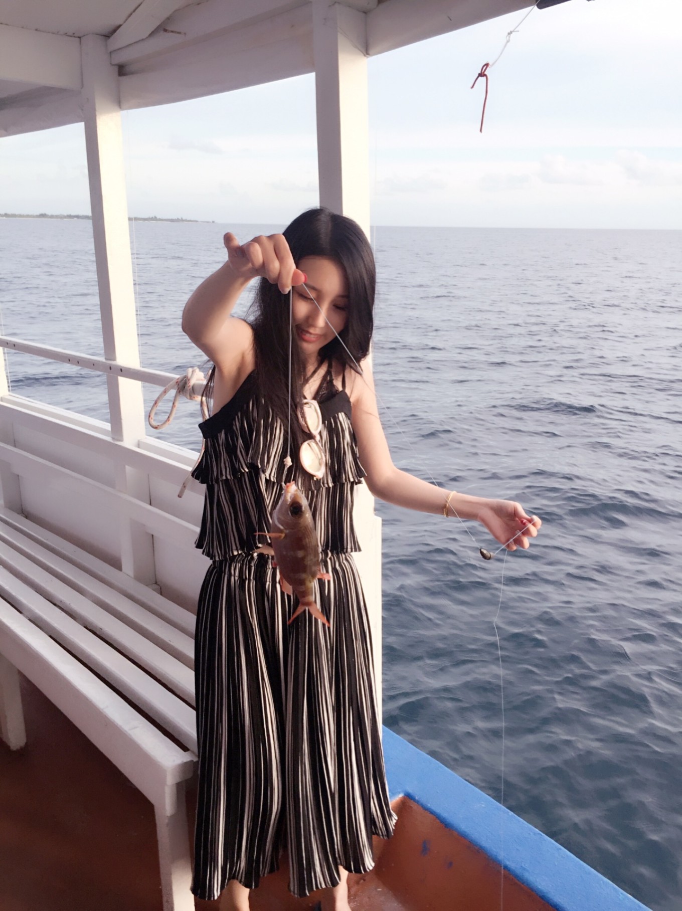 我们船的第一条🐠,是小黑钓到的!其实有对🎣,并没有多大兴趣,真心只是凑热闹,前期也没钓到,可是运气来了,挡都挡不住啊😂后半段,也不知道怎么的,🐟光找我来😜 前前后后我钓到了七八条🐟,不过都是小鱼!我还钓到过珊瑚上来😅😱我们这船大家其实钓到的都挺多的!我们总共得有45条以上👏👏
